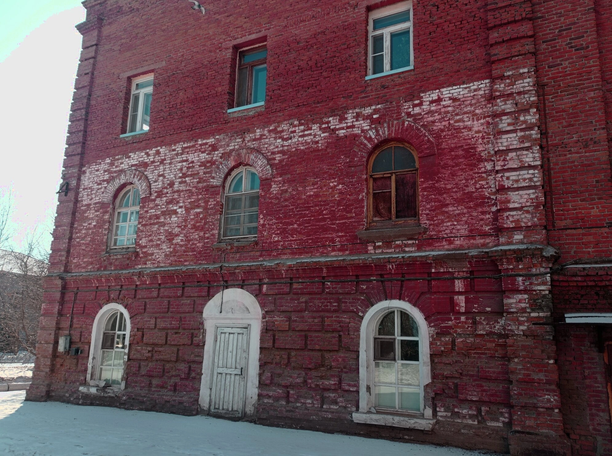 На представленной фотографии запечатлена Церковь Казанской иконы Божией Матери, расположенная в городе Омске. Храм представляет собой кирпичное здание, выполненное в традициях русской церковной архитектуры. Фасад сооружения отличается насыщенным красным цветом, что характерно для многих православных храмов России.