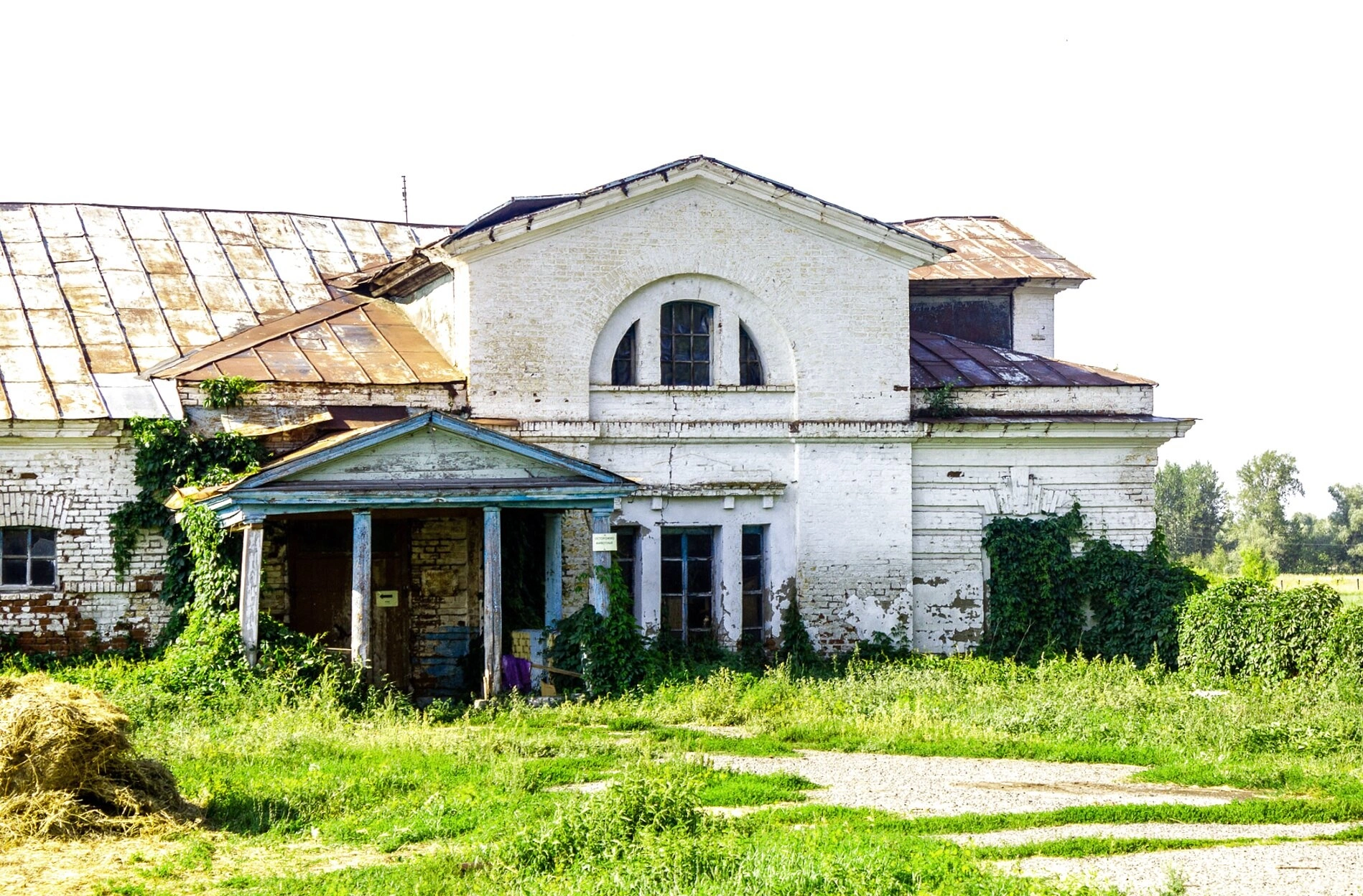 Прихрамовая территория и стены обильно поросли древесной и кустарниковой растительностью, что указывает на заброшенность данного святого места. Особого внимания заслуживает сохранившийся деревянный портик с колоннами, который, несмотря на ветхость, демонстрирует элементы былого архитектурного убранства.