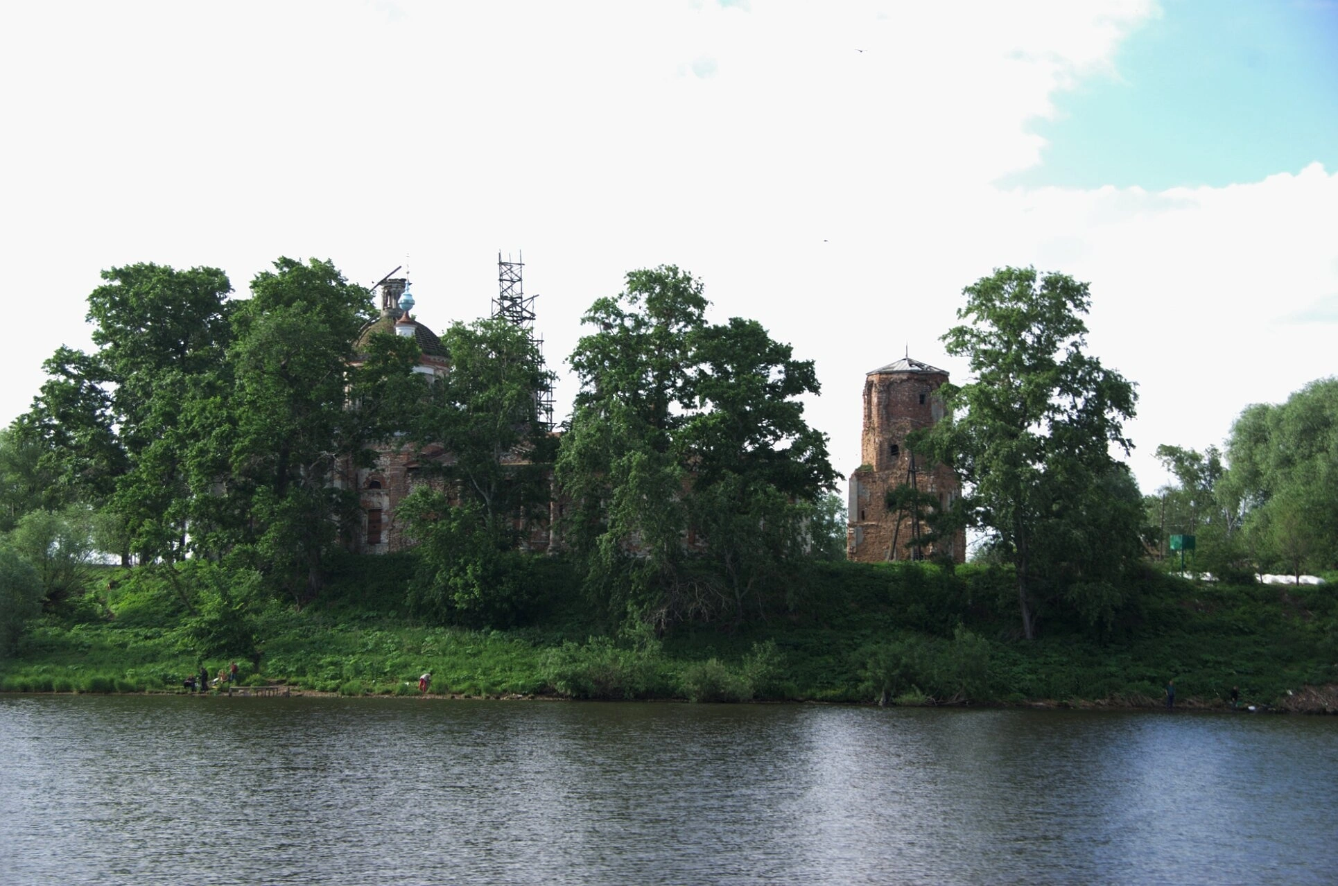 На представленной фотографии запечатлена Церковь Казанской иконы Божией Матери, расположенная в старинном селе Дединово Луховицкого района Московской области. Храм возвышается на живописном берегу реки Оки, откуда открывается прекрасный вид на водные просторы.