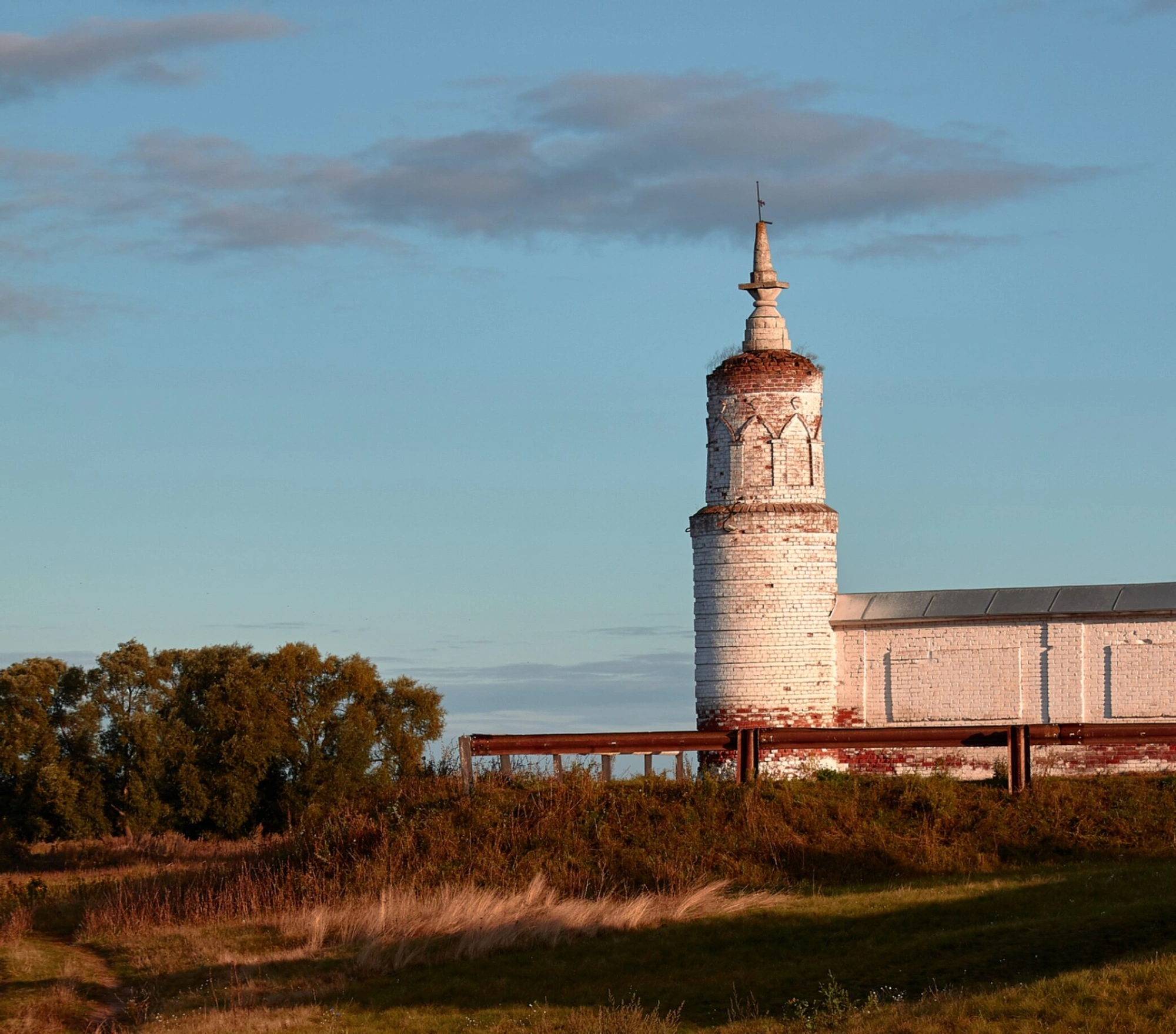 Казанская церковь представляет собой прекрасный образец православной архитектуры Подмосковья. Основной объем храма выполнен из красного кирпича, демонстрирующего благородные следы времени. Особое внимание привлекает высокая колокольня цилиндрической формы, увенчанная коническим завершением и православным крестом, устремленным в небесную высь. Верхняя часть колокольни украшена изящными декоративными элементами, характерными для церковного зодчества.