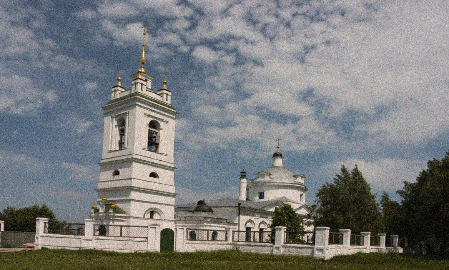 Храм окружён невысокой оградой с коваными элементами, что подчёркивает его ухоженность и сохранность. Зелёные насаждения, включая деревья и ухоженный травяной покров, обрамляют церковь, гармонично вписывая её в природный ландшафт. Эта церковь имеет особое значение для поклонников творчества Сергея Есенина, поскольку именно здесь крестили великого русского поэта.