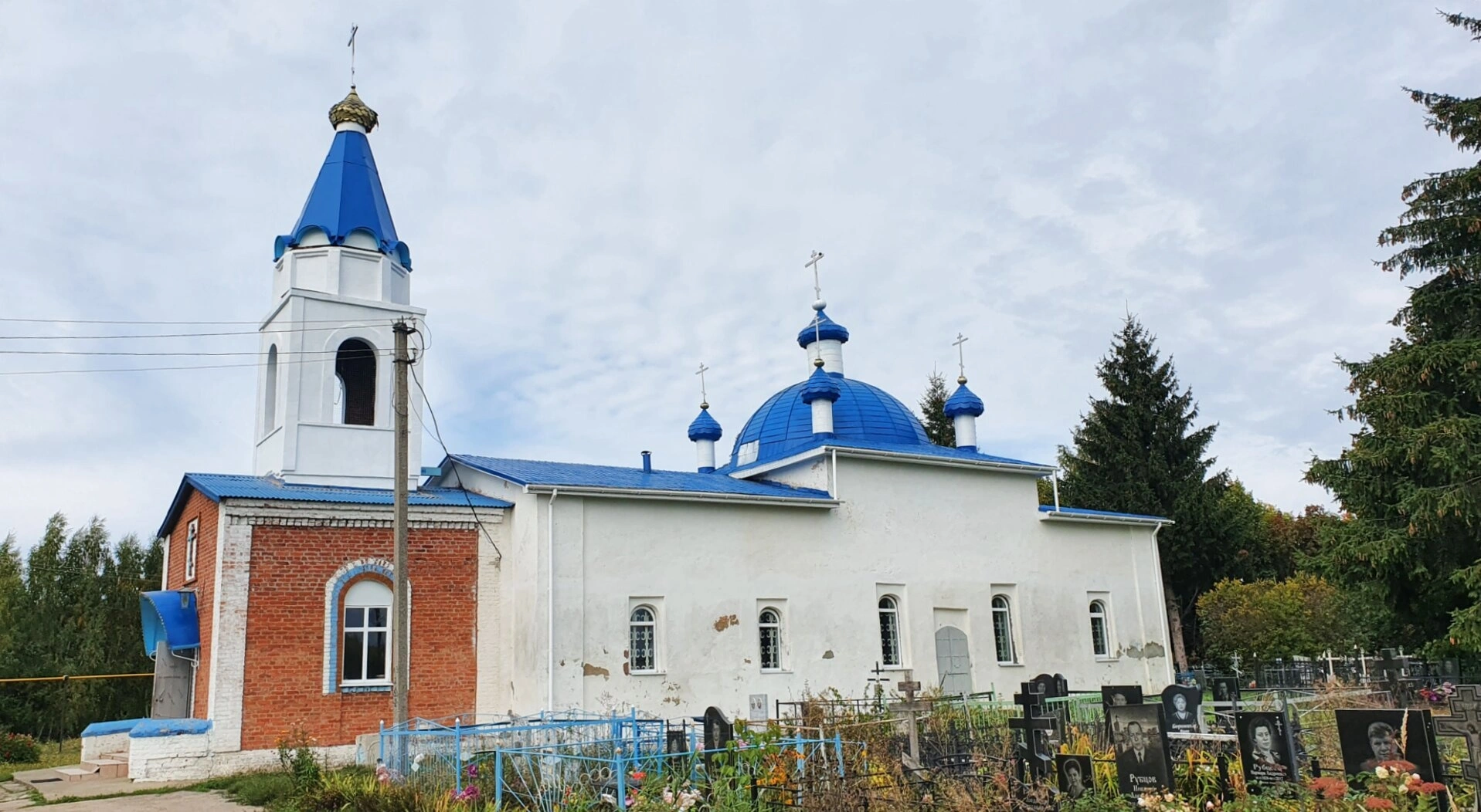 Рядом с церковью располагается сельское кладбище с многочисленными надгробными памятниками и крестами, что подчеркивает глубокую духовную связь храма с жизнью местной общины. Территория вокруг церкви благоустроена и ухожена, что свидетельствует о почитании этого святого места жителями окрестных поселений.