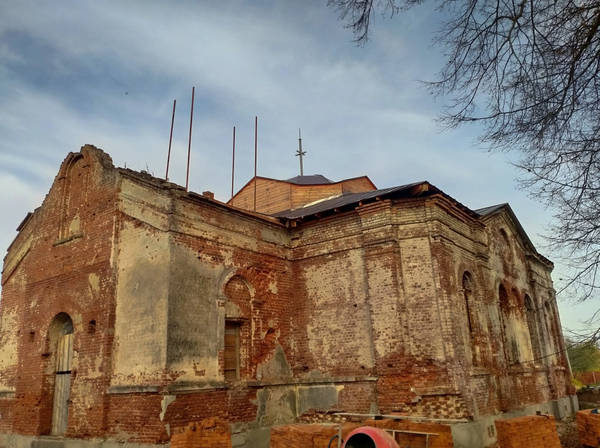 На снимке видно нынешнее состояние святыни, которое вызывает одновременно скорбь и надежду. Здание находится в процессе реставрации, которая, судя по наличию строительных материалов и техники, была приостановлена. Части стен требуют восстановления, на некоторых участках отсутствует кровля, но на одной из сохранившихся главок всё ещё возвышается святой крест — символ веры и надежды на возрождение.