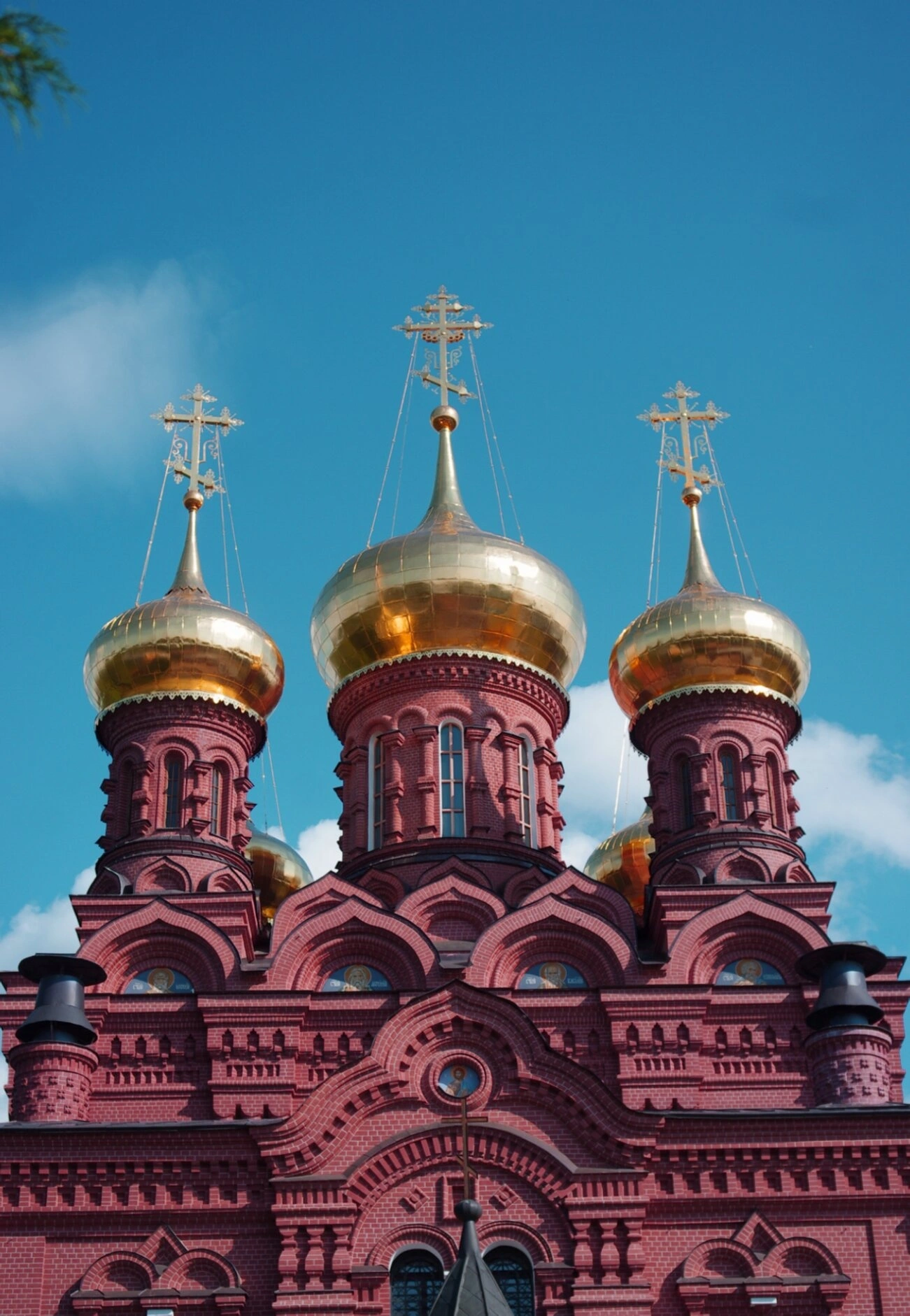 На фотографии отсутствуют люди, что позволяет в полной мере сосредоточиться на созерцании архитектурной красоты этого святого места. Изображение передает благолепие православного храма, призывая к молитве и духовному размышлению.