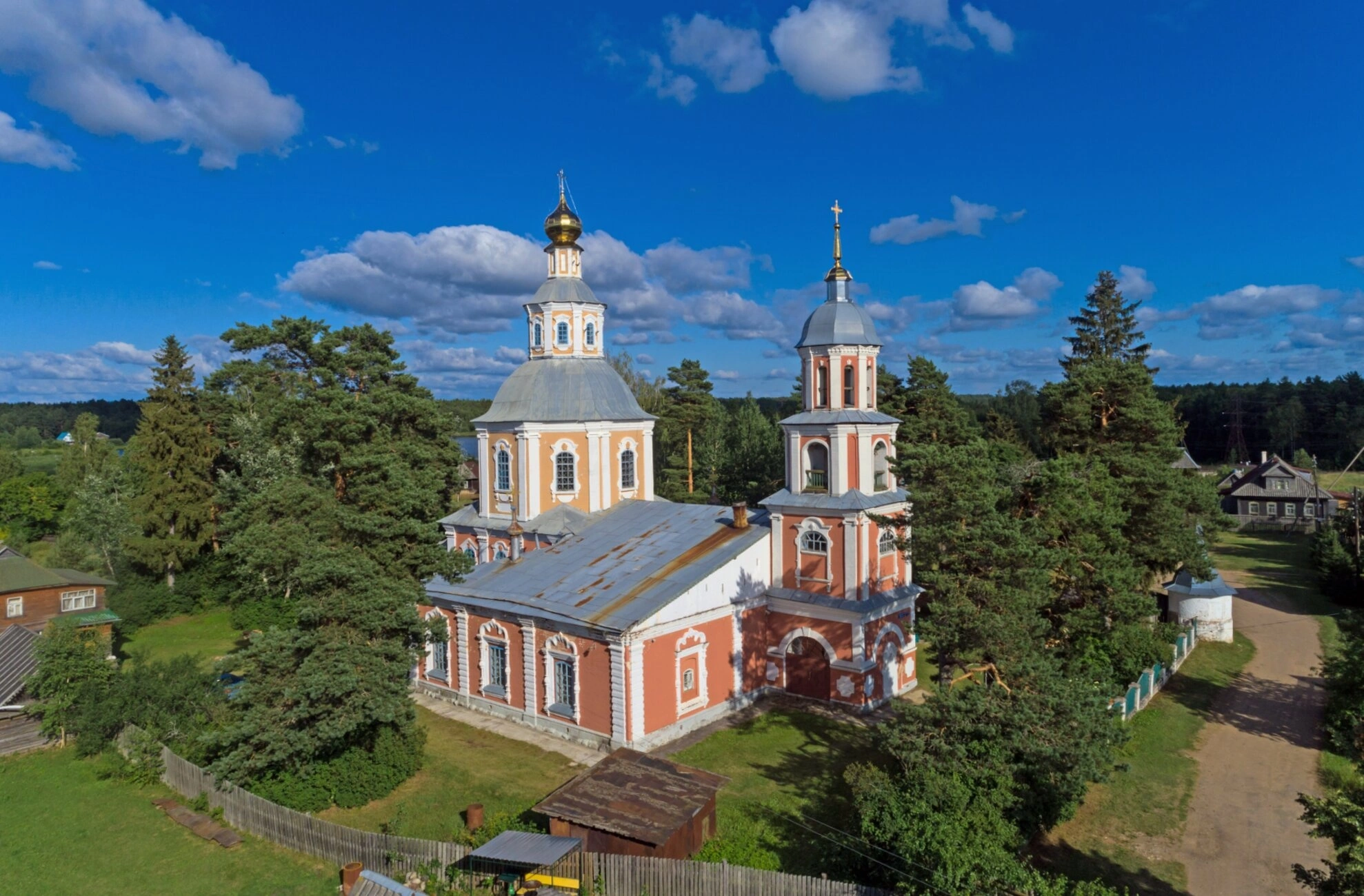 На представленной фотографии запечатлена Церковь Казанской иконы Божией Матери, расположенная в селе Верхние Котицы (иногда упоминаемое как просто Котицы) Тверской области. Этот православный храм является значимым памятником церковной архитектуры конца XVIII — начала XIX веков и объектом культурного наследия региона.