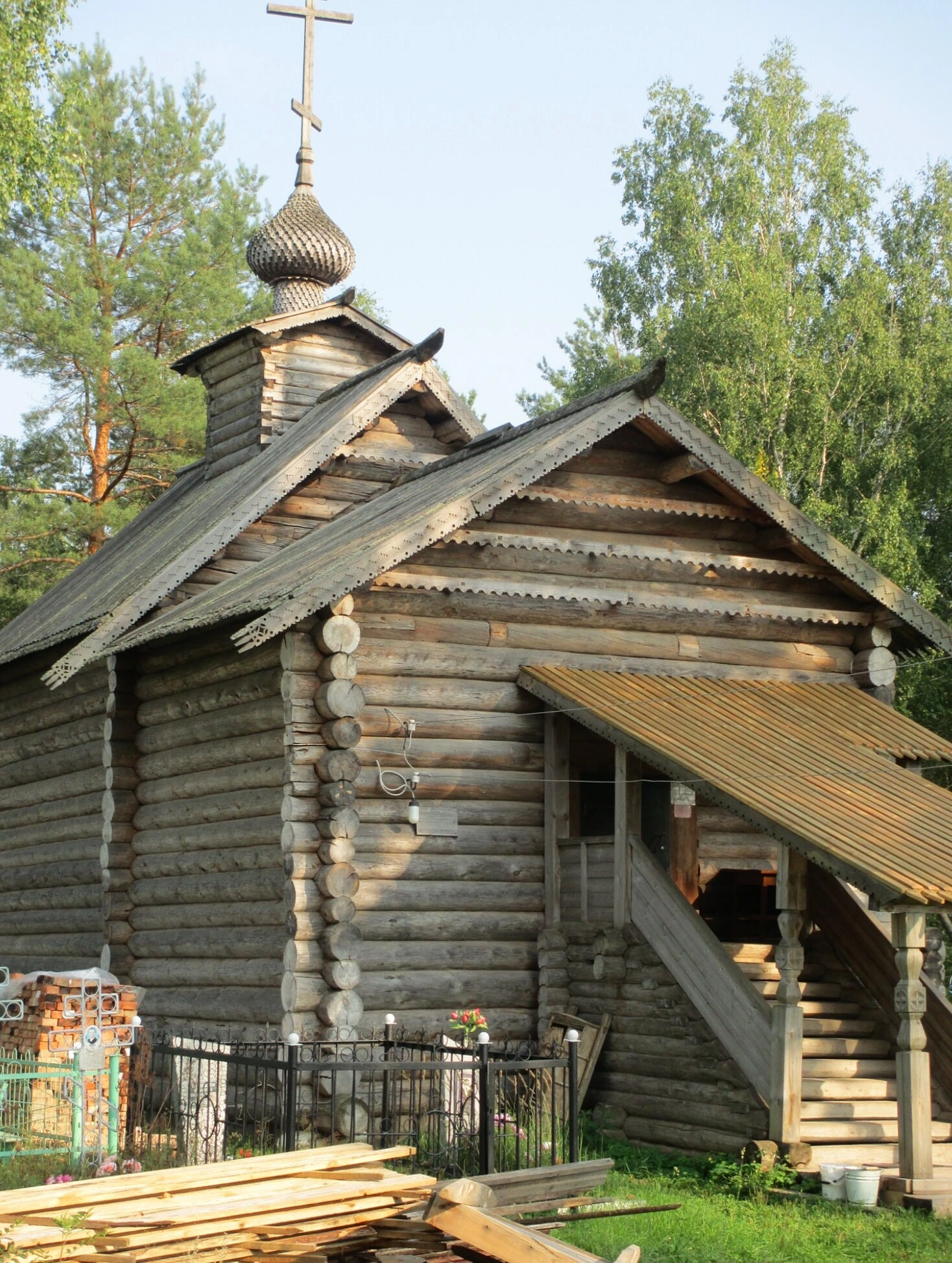 На представленной фотографии запечатлена Церковь Казанской иконы Божией Матери, расположенная в посёлке Юрино Нижегородской области. Этот деревянный православный храм является ярким образцом русского церковного зодчества и духовным центром для местных жителей.