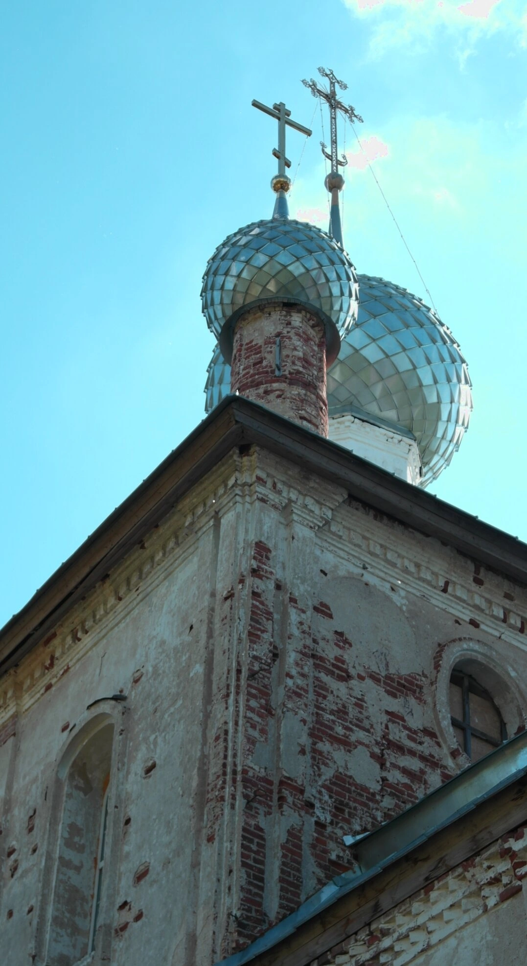 На снимке видны следы разрушения и обветшания, что свидетельствует о длительном периоде забвения этого духовного центра. Несмотря на утраты, храм сохраняет свои архитектурные формы и продолжает оставаться важным элементом историко-культурного ландшафта Ярославской земли. В настоящее время церковь включена в реестр объектов культурного наследия и представляет интерес для паломников, историков архитектуры и всех, кому дорого православное наследие России.