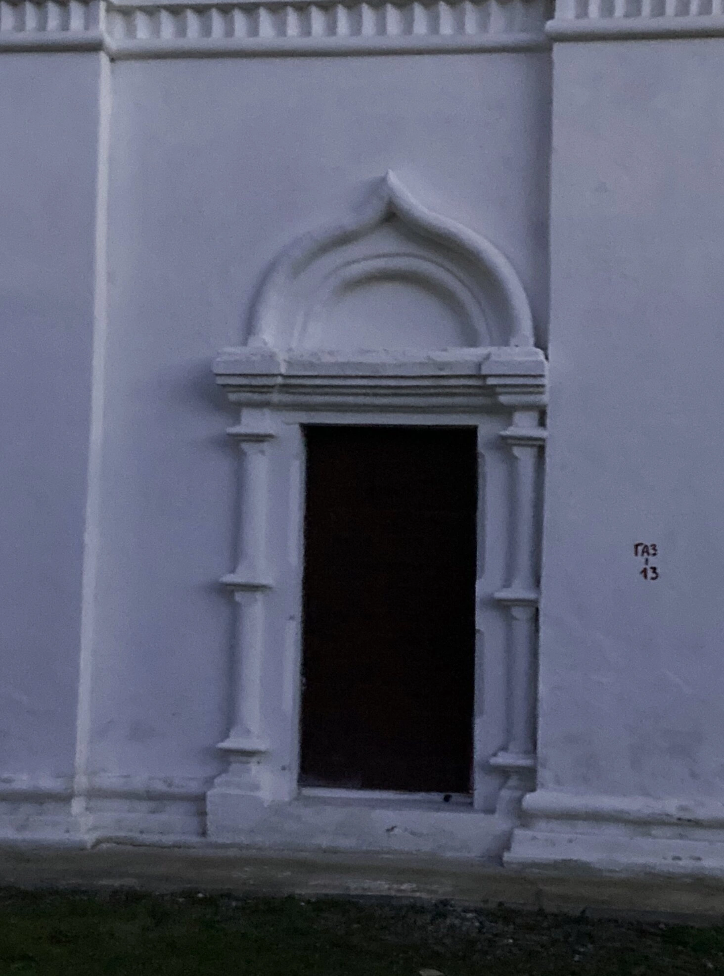 Особого внимания заслуживает сохранившаяся деталь — рельефная надпись «m3», а также цифры «13», которые, вероятно, являются меткой каменотёса или поздней нумерацией. Каждый элемент декора храма исполнен глубокого смысла и служит не только украшению, но и выражению православного мировоззрения через архитектурные формы.