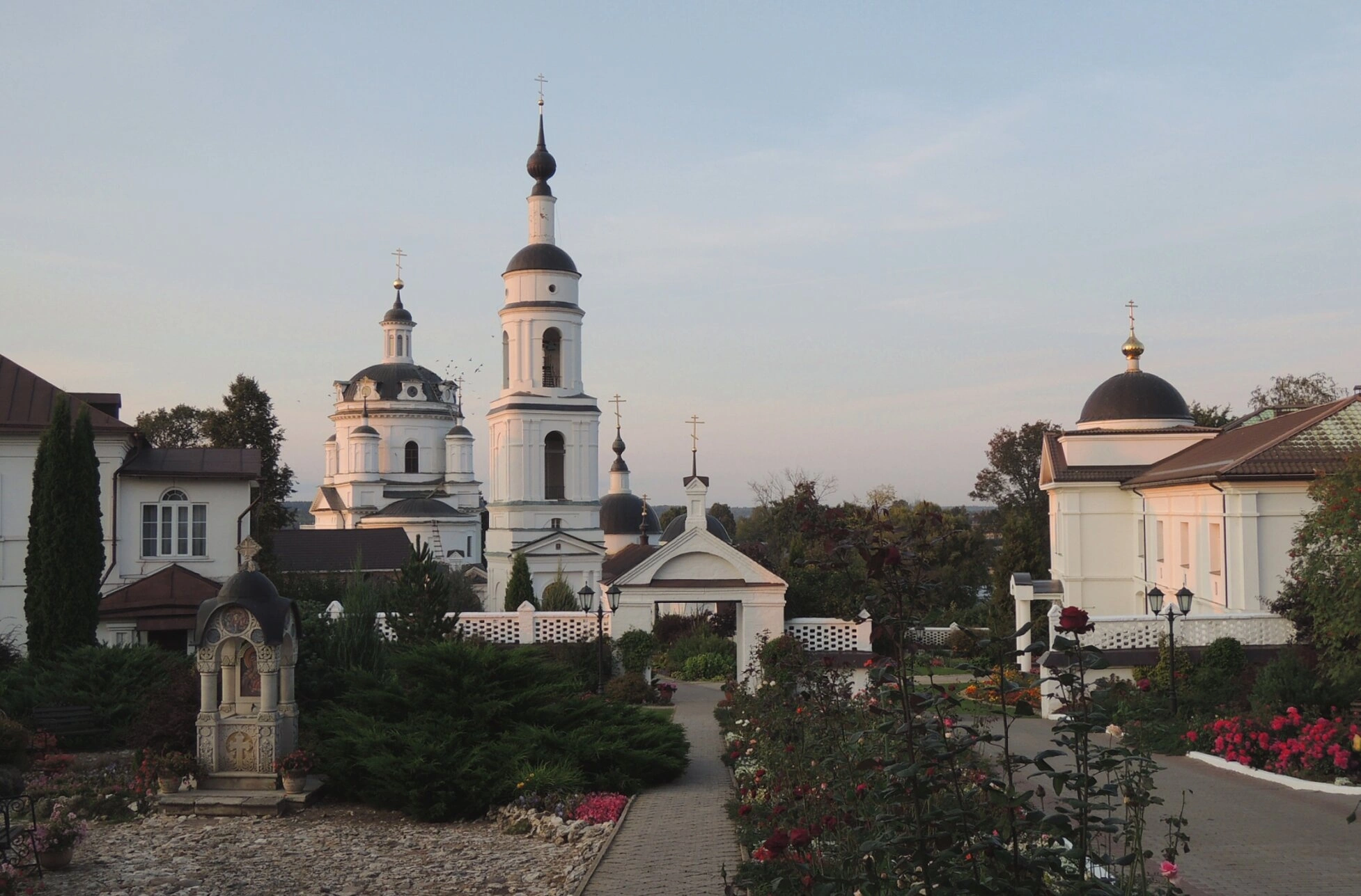 На представленной фотографии запечатлена Церковь Корсунской иконы Божией Матери — один из храмов Свято-Никольского Черноостровского монастыря, расположенного в городе Малоярославце Калужской области. Монастырь находится на высоком берегу реки Лужи, на так называемом Чёрном Острове, что и дало ему название.