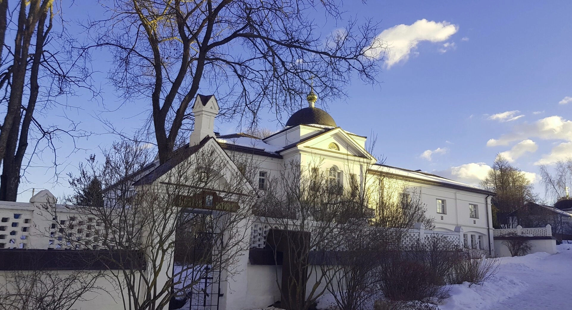 Мягкий рассеянный свет, запечатленный на фотографии, свидетельствует о раннем утре или тихом вечере — времени особой благодати в монастырской жизни. Весь архитектурный ансамбль обители, воссозданный после decades запустения в XX веке, символизирует возрождение православной веры на русской земле и является местом духовного подвига сестер монастыря.