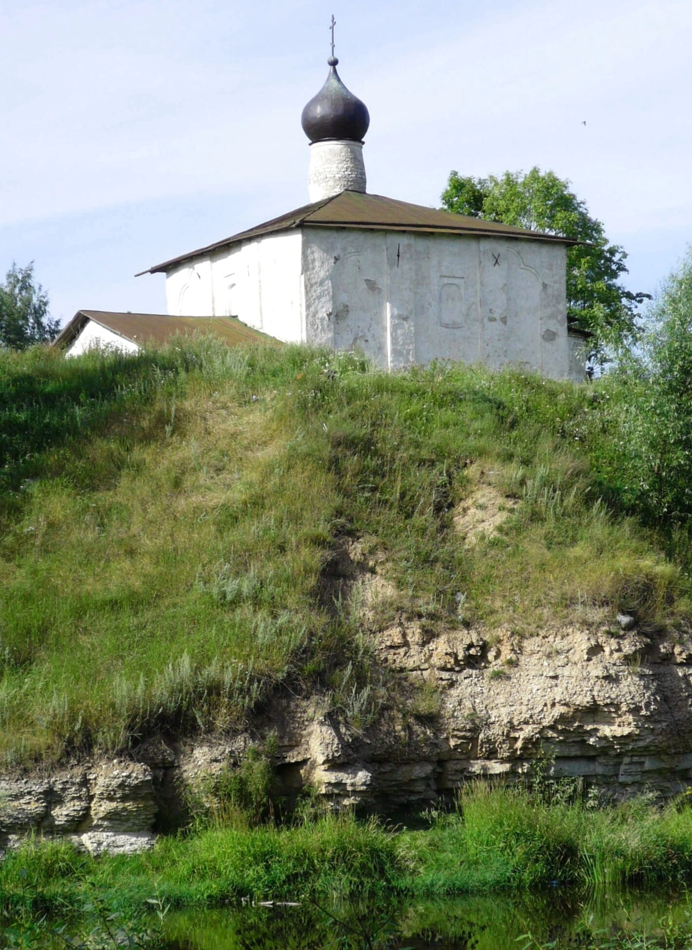 У подножия святой горы тихими струями протекает река Пскова, в спокойных водах которой отражается небесная лазурь и окружающая храм богозданная красота. Крутые склоны холма местами обнажают каменистую почву, напоминая о непрестанной борьбе духа с мирской суетой. Зелень деревьев и кустарников, окружающих церковь, символизирует живоносную силу православной веры, процветающей на псковской земле.