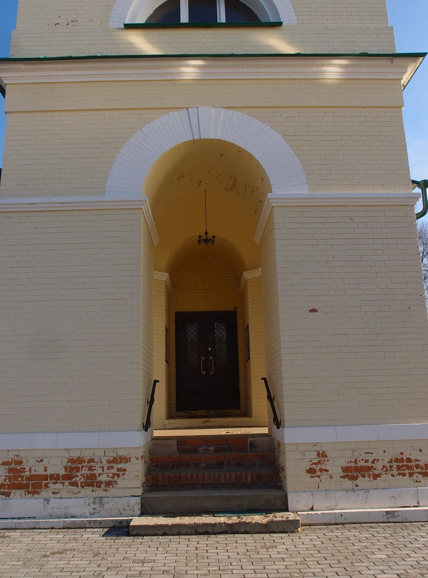 Врата храма выполнены в виде монументальной арки, ведущей к тёмной деревянной двери. Переступив через несколько ступеней, которые обрамлены чёрными перилами, православные христиане готовят свои сердца к молитве. Само здание возведено из светло-жёлтого кирпича, что создаёт ощущение небесного света и благодати, нисходящей на прихожан.