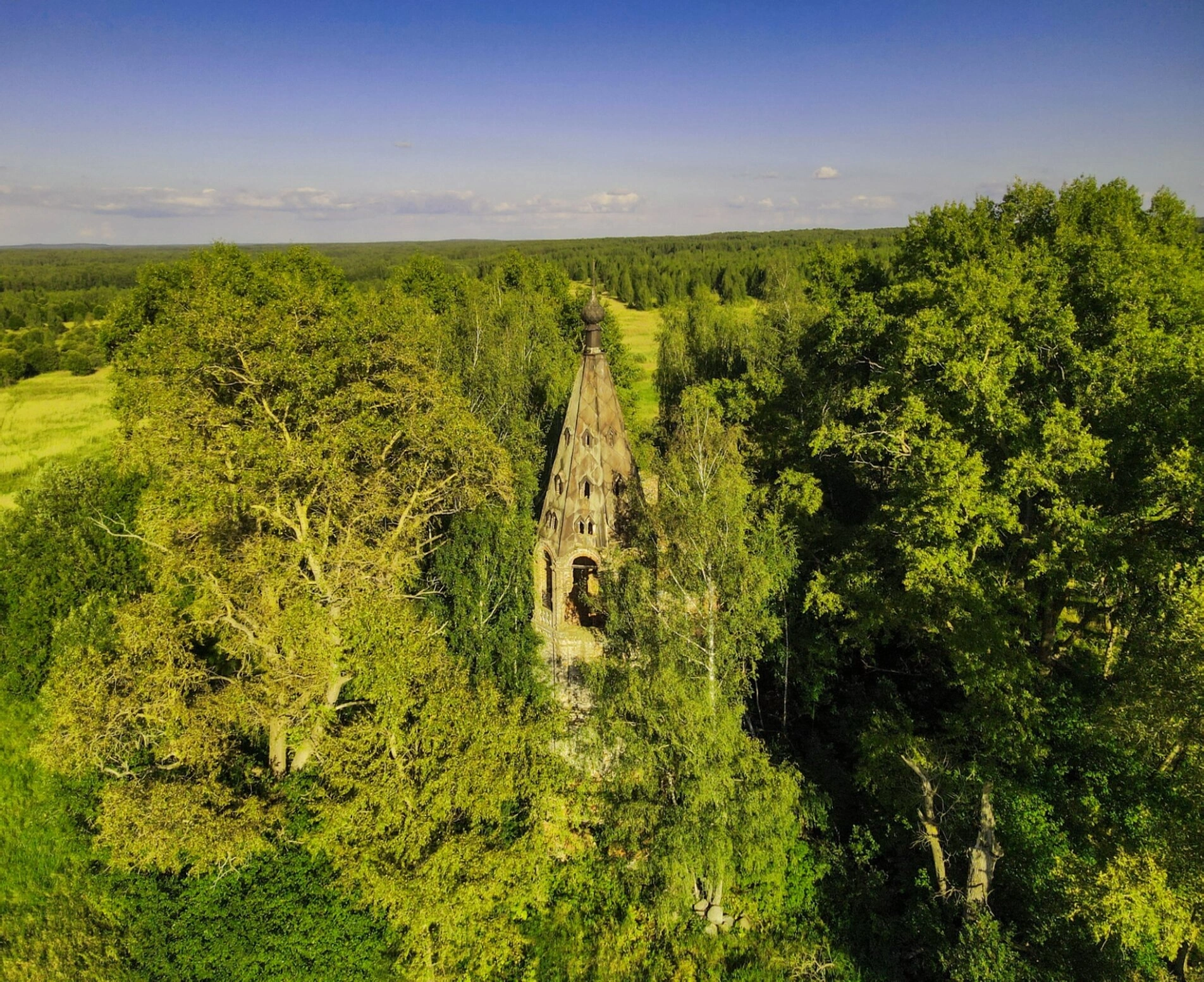 На фотографии храм изображён в окружении природного ландшафта, что подчёркивает его уединённое расположение. Отсутствие ремонтных работ и восстановительных мероприятий свидетельствует о длительном периоде забвения этой православной святыни. Состояние здания требует незамедлительных мер по сохранению этого памятника церковной архитектуры для будущих поколений.