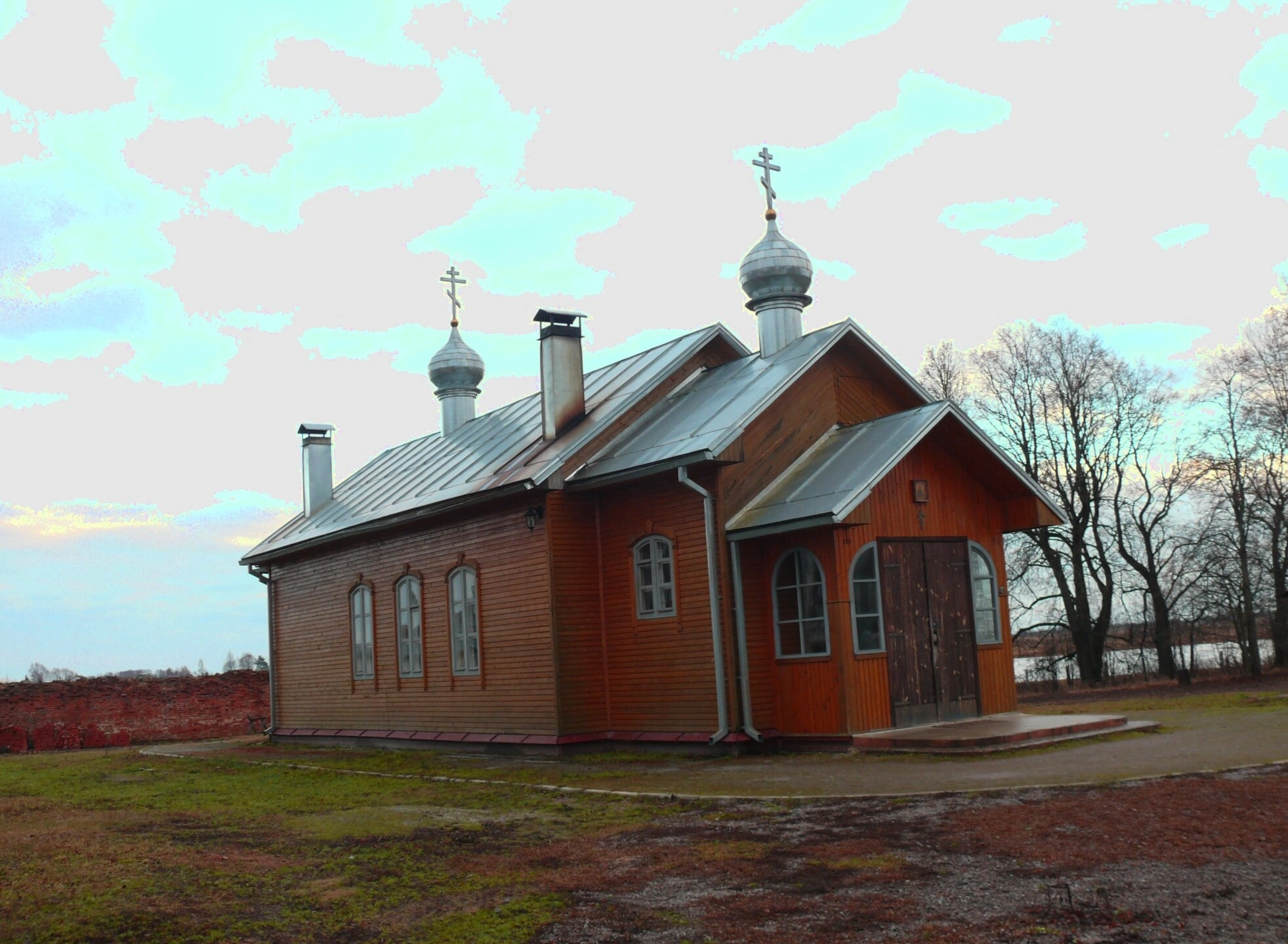 На представленной фотографии запечатлена деревянная Церковь во имя Преподобного Михаила Клопского, расположенная на территории Свято-Троицкого Михаило-Клопского мужского монастыря в Новгородской области. Этот храм является одной из главных святынь обители, тесно связанной с именем святого подвижника XV века — преподобного Михаила Клопского, Христа ради юродивого, прославившегося своими пророчествами и аскетическими подвигами.