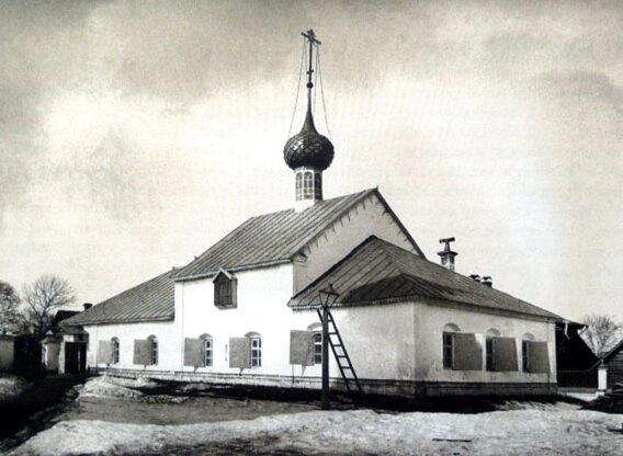 На исторической фотографии запечатлена летняя церковь Никиты Мученика, входившая в состав Никитско-Сретенского прихода в Ярославле. Это одноэтажное каменное здание с двускатной крышей и скромным куполом, характерное для традиционного русского церковного зодчества.