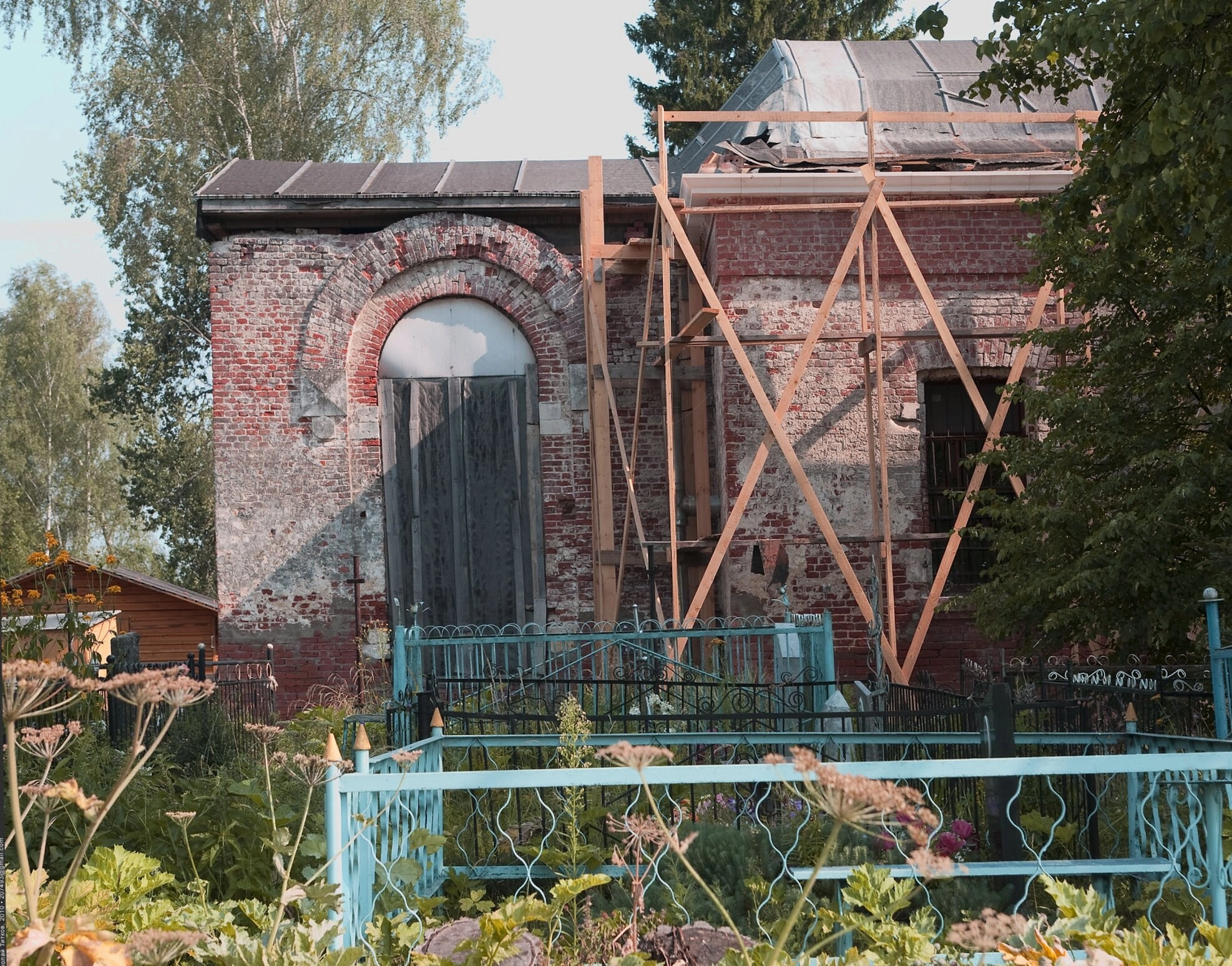 Строительные леса, установленные с правой стороны здания, указывают на продолжающиеся восстановительные работы. Это вселяет надежду на возвращение храму былого благолепия. Реставрация таких святынь представляет собой важное дело сохранения духовного и культурного наследия России.