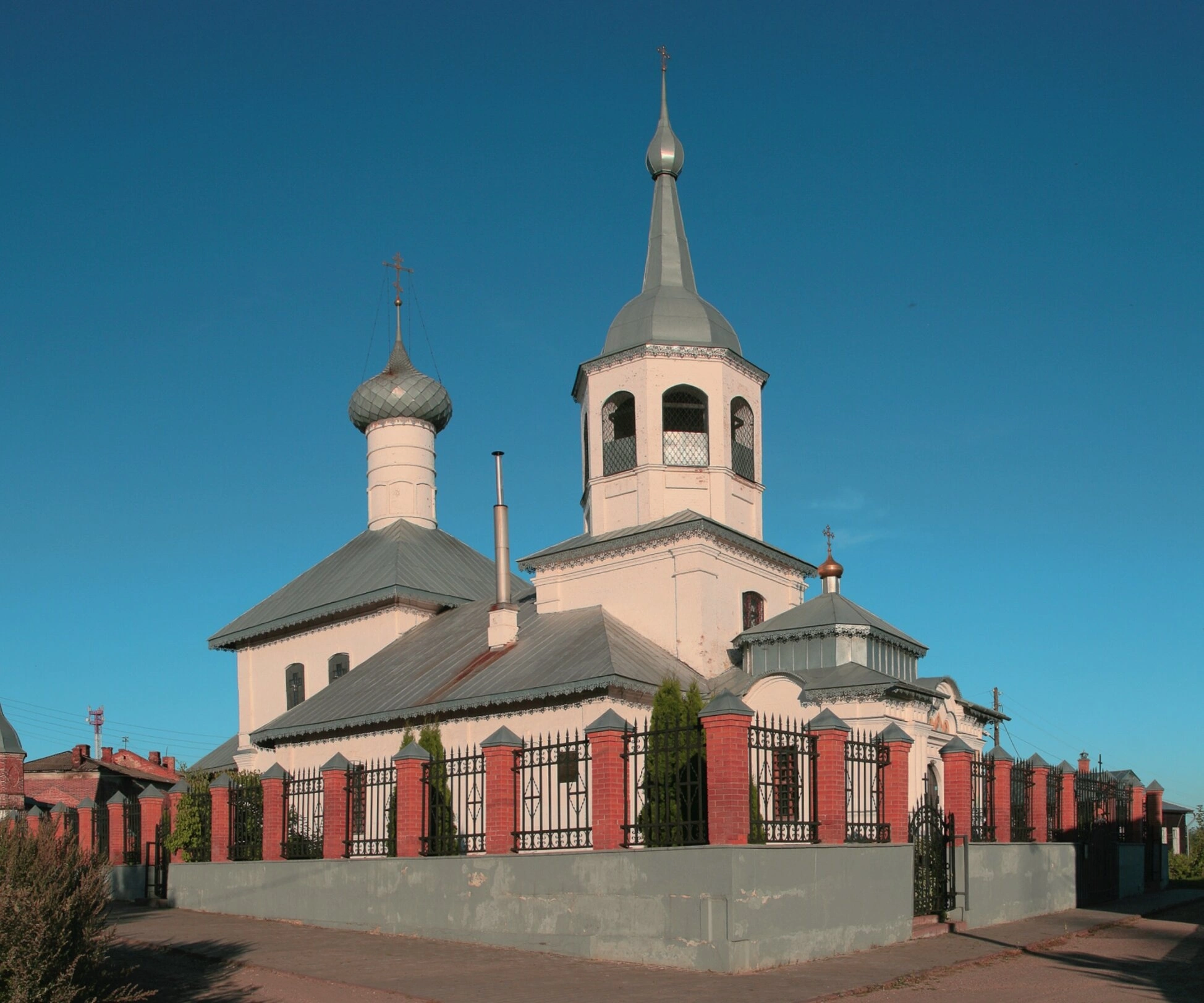 Небесная лазурь, запечатлённая на снимке, подчёркивает духовную чистоту и величие этого святого места. Яркое дневное освещение позволяет рассмотреть все архитектурные особенности храма, построенного в 1745 году на месте более древней деревянной церкви. Церковь Николы на Подозерье является не только действующим православным храмом, но и объектом культурного наследия федерального значения, привлекающим паломников и туристов со всей России.