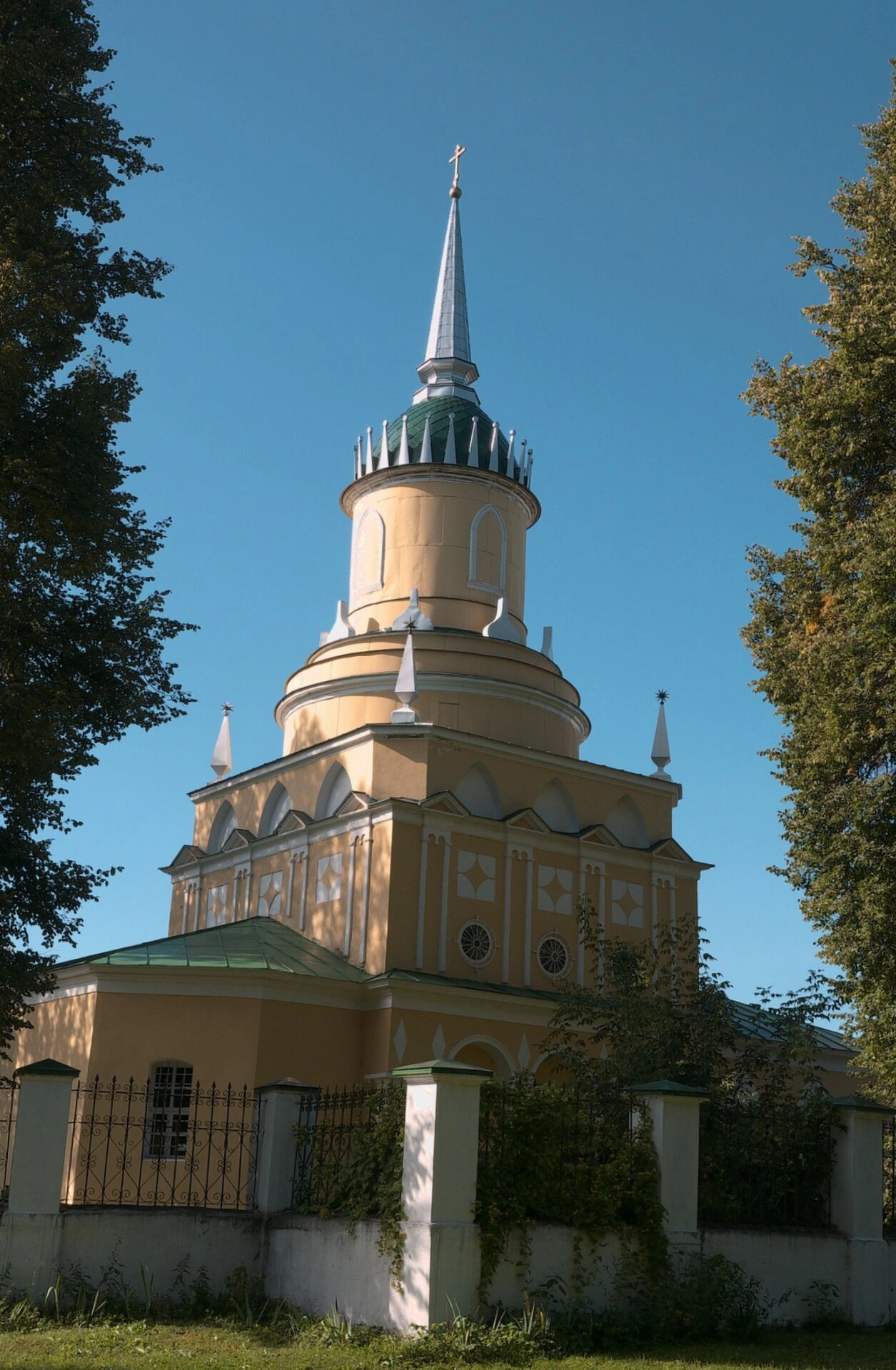 Церковь окружает умиротворённый сельский пейзаж: высокие деревья, тенистые аллеи и аккуратная ограда с каменными столбами. Несмотря на свой почтенный возраст и сложные периоды в истории, храм сохранил своё духовное и историко-культурное значение. Ныне он является объектом культурного наследия и действует для верующих, продолжая многовековую традицию молитвы в этом святом месте. Фотография передаёт не только архитектурные детали, но и особую атмосферу благодати и покоя, свойственную этому уголку Подмосковья.