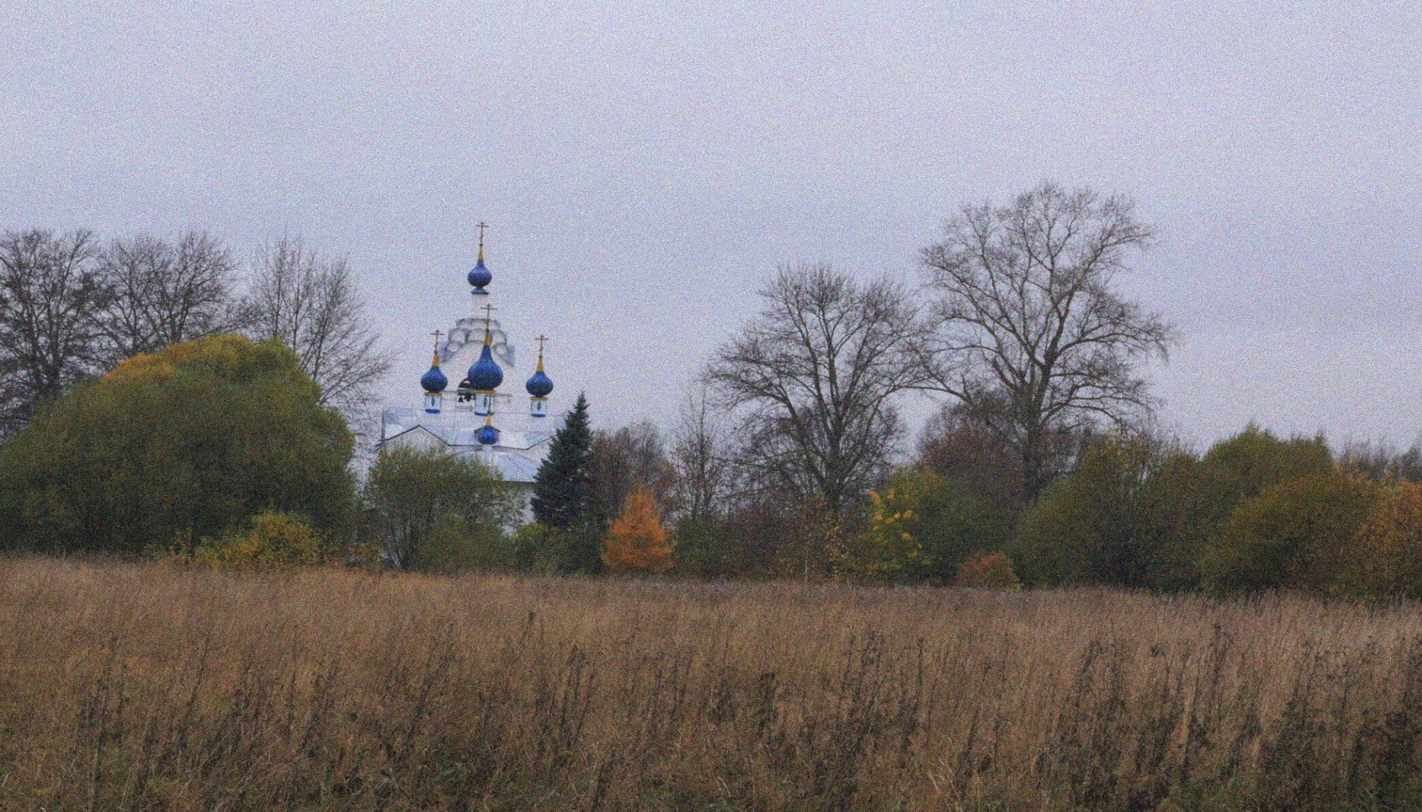 Церковь Николая Чудотворца является памятником русской православной архитектуры. Храм венчают синие купола, увенчанные злачёными крестами, символизирующими победу Господа нашего Иисуса Христа над смертью. Осеннее освещение мягко выделяет белые стены церкви на фоне окружающего пейзажа, создавая атмосферу умиротворения и тихой молитвенной радости.