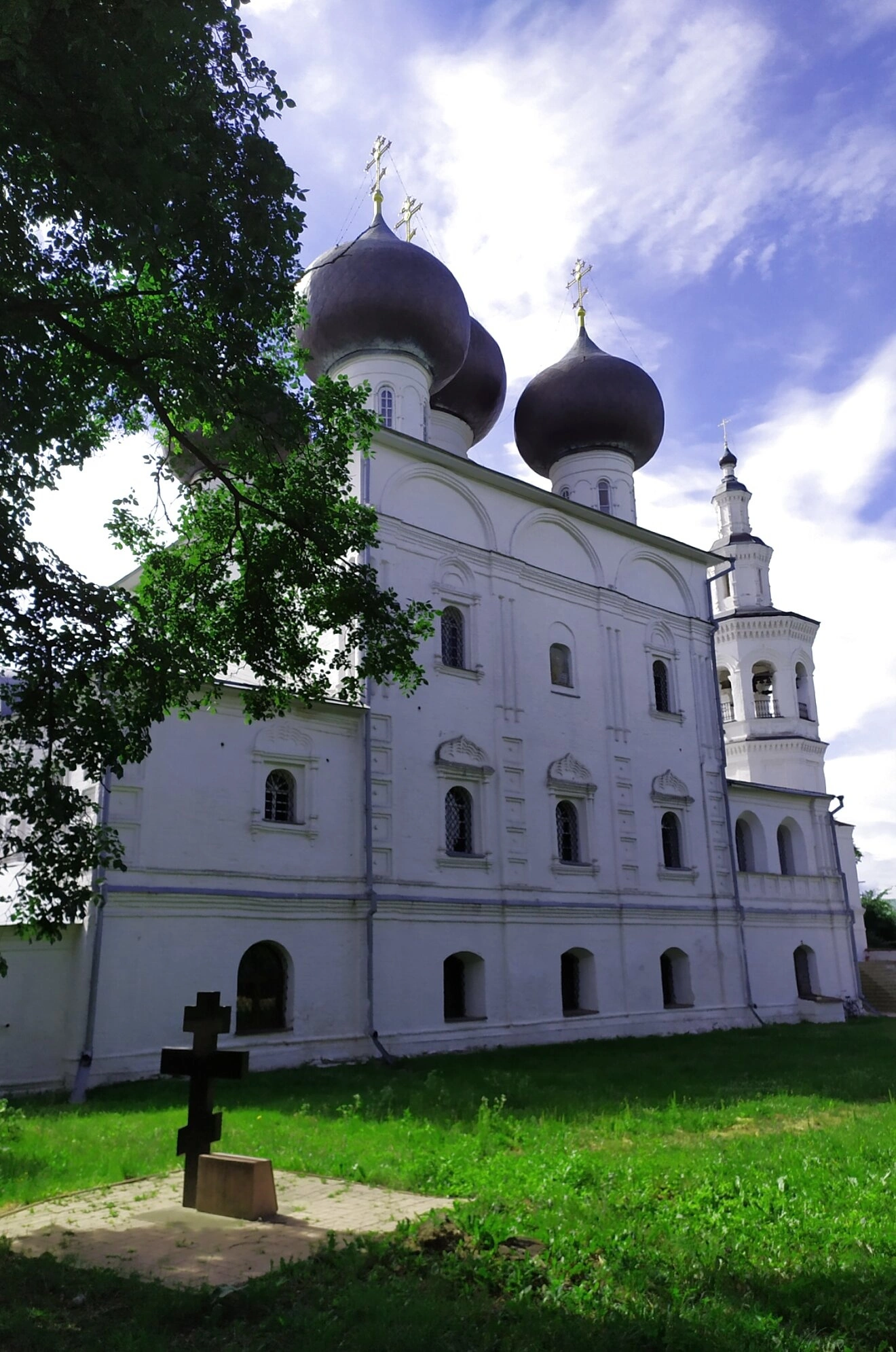 На представленной фотографии запечатлён старинный православный храм — Церковь святителя Николая Чудотворца, что расположена во Владычной слободе города Вологды. Белоснежный каменный храм с тёмными куполами, увенчанными благодатными крестами, является ярким памятником церковной архитектуры и духовным центром для православных христиан.