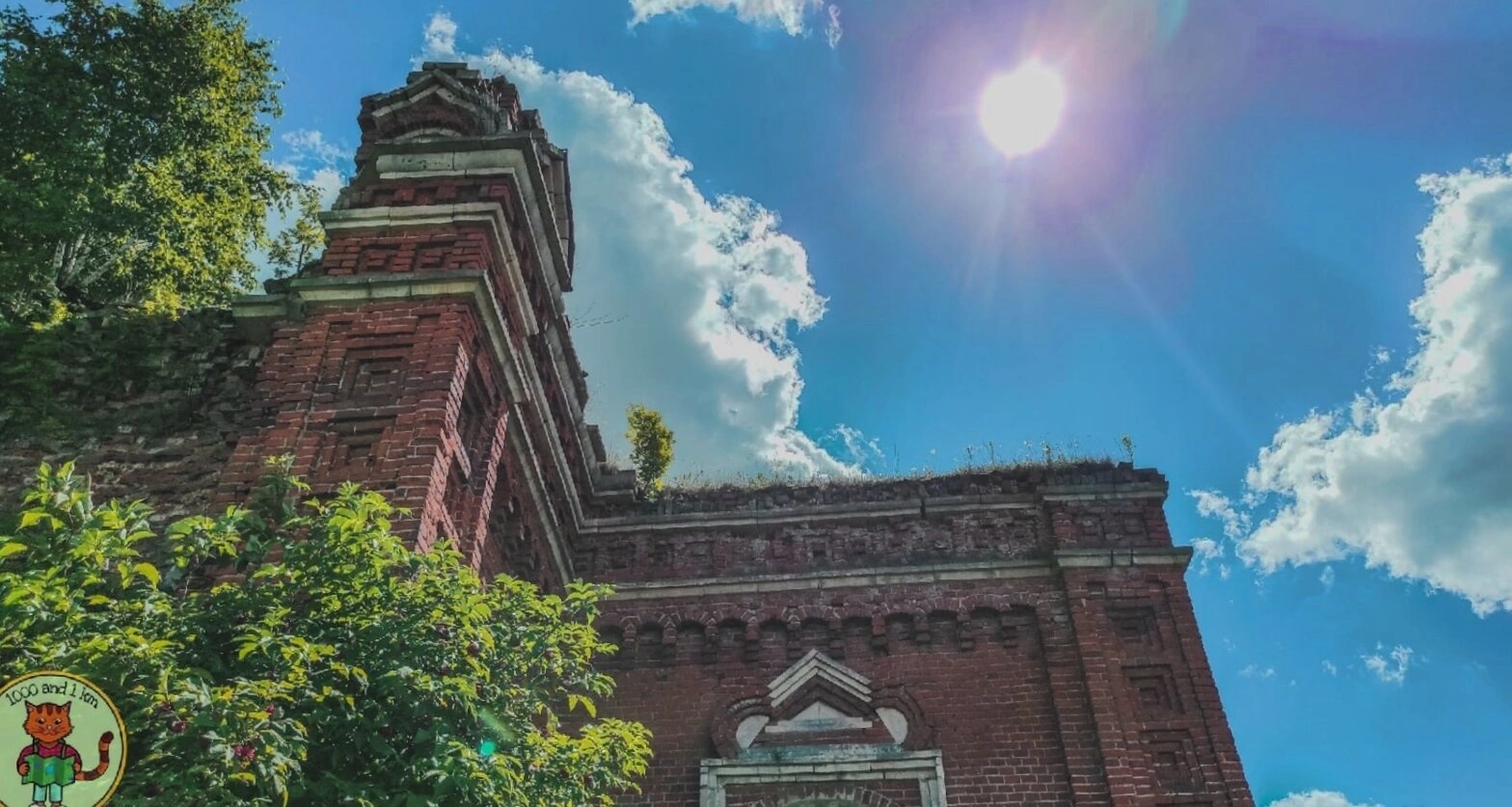 На представленной фотографии запечатлена полуразрушенная Церковь во имя святителя Николая Чудотворца с приделами святых апостолов Петра и Павла, расположенная в селе Иваньково Ясногорского района Тульской области. Храм находится в живописной местности на берегу реки Вашана, что придаёт ему особое духовное значение в контексте православной традиции размещения святынь у водных источников.