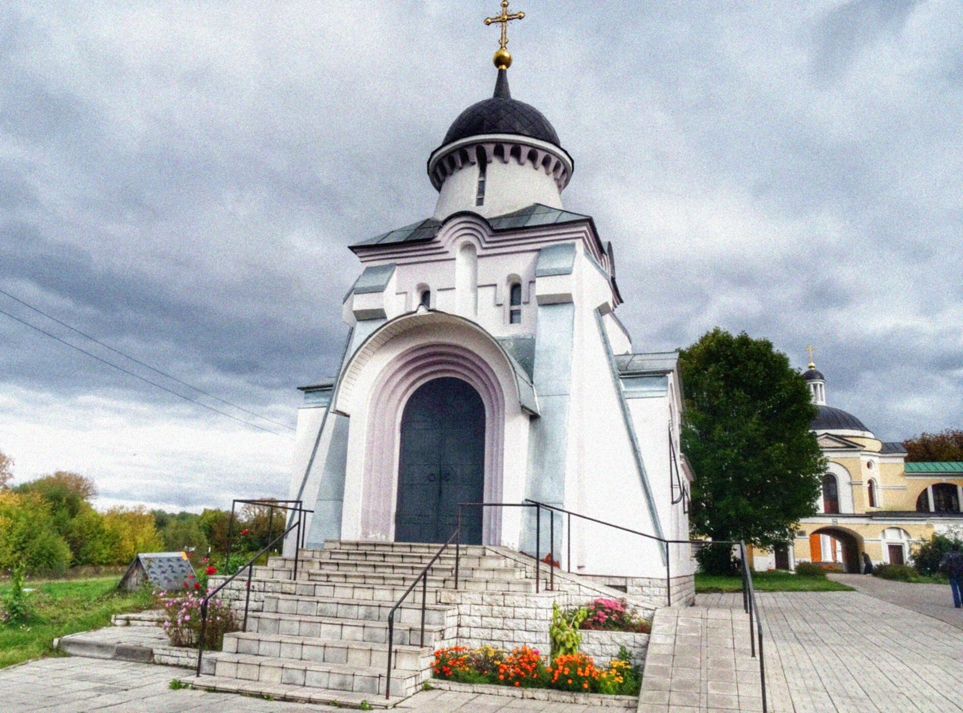 На представленной фотографии запечатлена Церковь Новомучеников и Исповедников Российских, что располагается в городе Твери на территории исторического Воскресенского кафедрального собора, являющегося частью архитектурного комплекса Рождественского монастыря. Этот православный храм был возведён и освящён в память о всех тех, кто принял страдания и мученическую кончину за исповедание православной веры в годы богоборческих гонений XX столетия.
