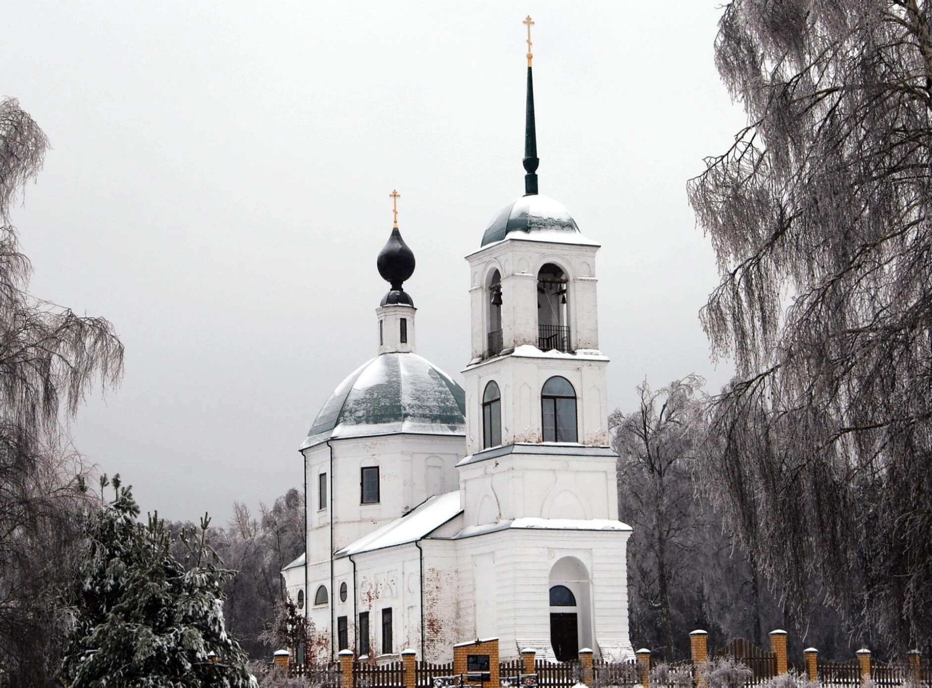 На представленной фотографии запечатлена Церковь Покрова Пресвятой Богородицы, расположенная в деревне Княжская Ковровского района Владимирской области. Храм предстаёт в зимнем убранстве, укрытый пушистым снежным покровом, что создаёт особую атмосферу благоговения и умиротворения.