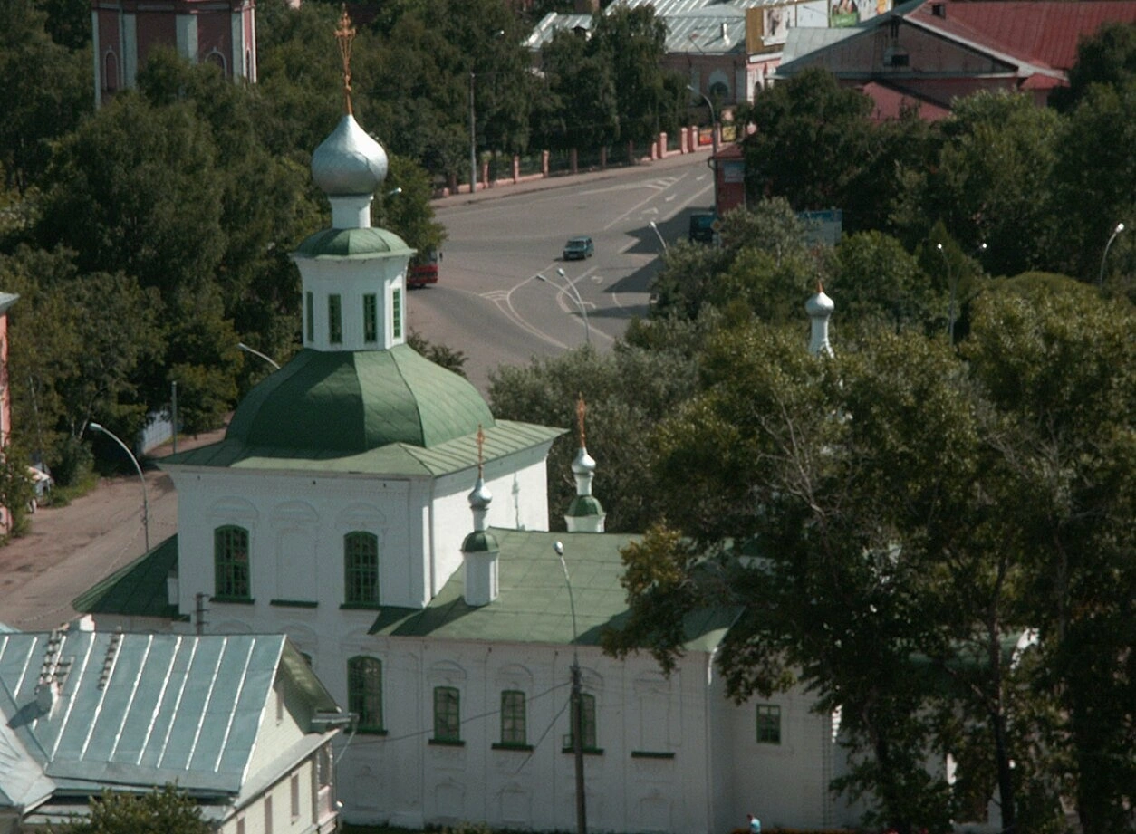 На представленной фотографии запечатлена старинная Церковь Покрова Пресвятой Богородицы, что на Торгу, в древнем городе Вологде. Снимок выполнен с возвышенности, что позволяет в полной мере оценить величественный облик этого православного храма и его гармоничное единение с окружающим городским пейзажем.