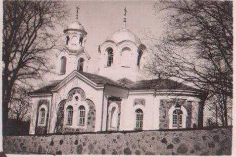 На представленной фотографии запечатлён храм в честь Покрова Пресвятой Богородицы, расположенный в агрогородке Красное Молодечненского района Минской области. Снимок, выполненный в 1941 году, обладает высокой исторической ценностью, демонстрируя архитектурный облик святыни в первоначальном виде. Здание храма является ярким образцом церковного зодчества с характерным для православной традиции символизмом.