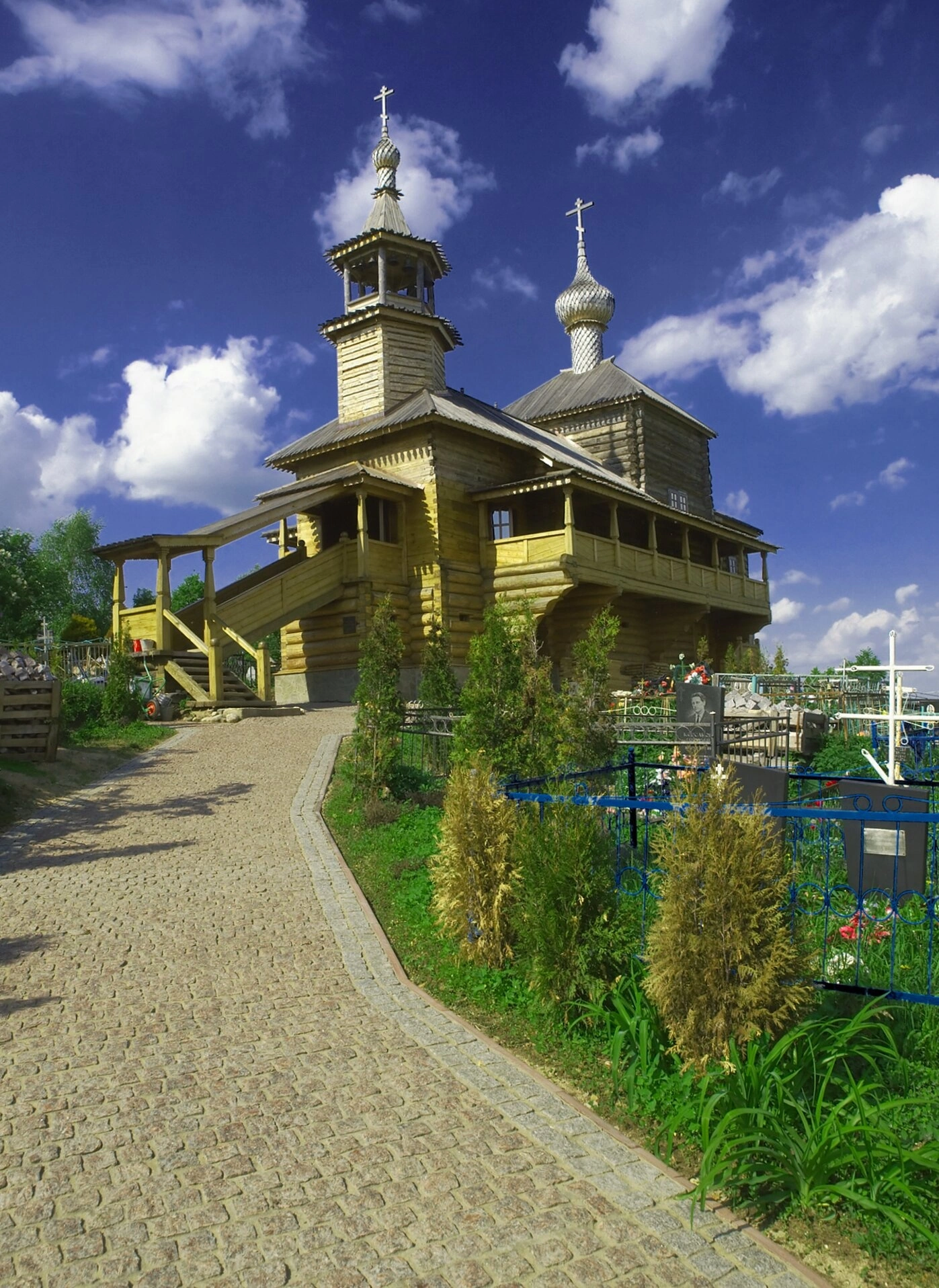На представленной фотографии запечатлена деревянная Церковь Покрова Пресвятой Богородицы, расположенная в исторической части города Боровска Калужской области. Этот старинный храм является главным соборным сооружением Высоко-Покровского монастыря, основанного в 1410 году преподобным Пафнутием Боровским.