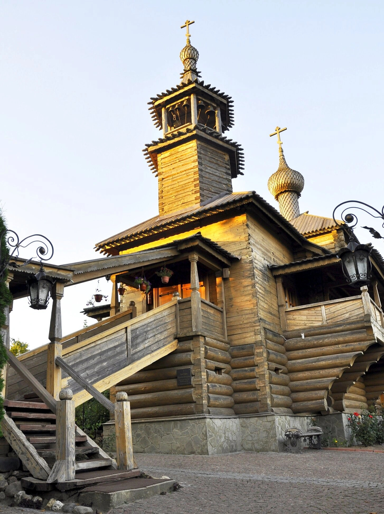 На снимке золотистый солнечный свет мягко освещает деревянные стены, выявляя естественную текстуру древесины и создавая ощущение тепла и благодати. Фотография передает особую умиротворенную атмосферу этого святого места, приглашая к молитвенному созерцанию и духовному размышлению. Церковь Покрова Пресвятой Богородицы в Боровске остается действующим храмом и важным духовным центром, привлекающим паломников и ценителей русской культуры.