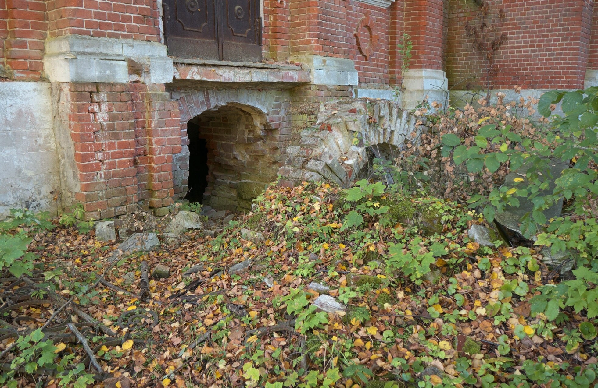 Территория вокруг храма поросла дикой растительностью, а земля усыпана опавшими листьями, что свидетельствует о длительном запустении святого места. Несмотря на плачевное состояние, в очертаниях сооружения угадывается былая красота и величие православной святыни, освященной в честь Покрова Пресвятой Владычицы нашей Богородицы и Приснодевы Марии.