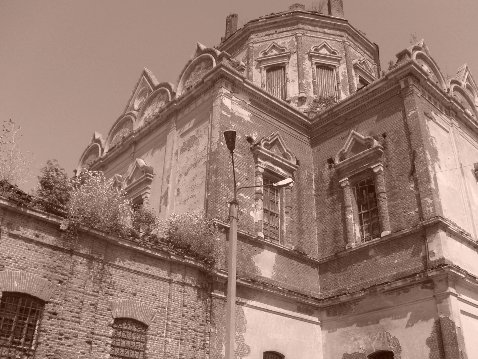 На представленной фотографии запечатлён величественный облик Церкви Покрова Пресвятой Богородицы, одного из старейших православных храмов города Ельца. Это каменный двухэтажный храм, увенчанный мощным световым барабаном с луковичной главой, который является ярким образцом русского церковного зодчества.