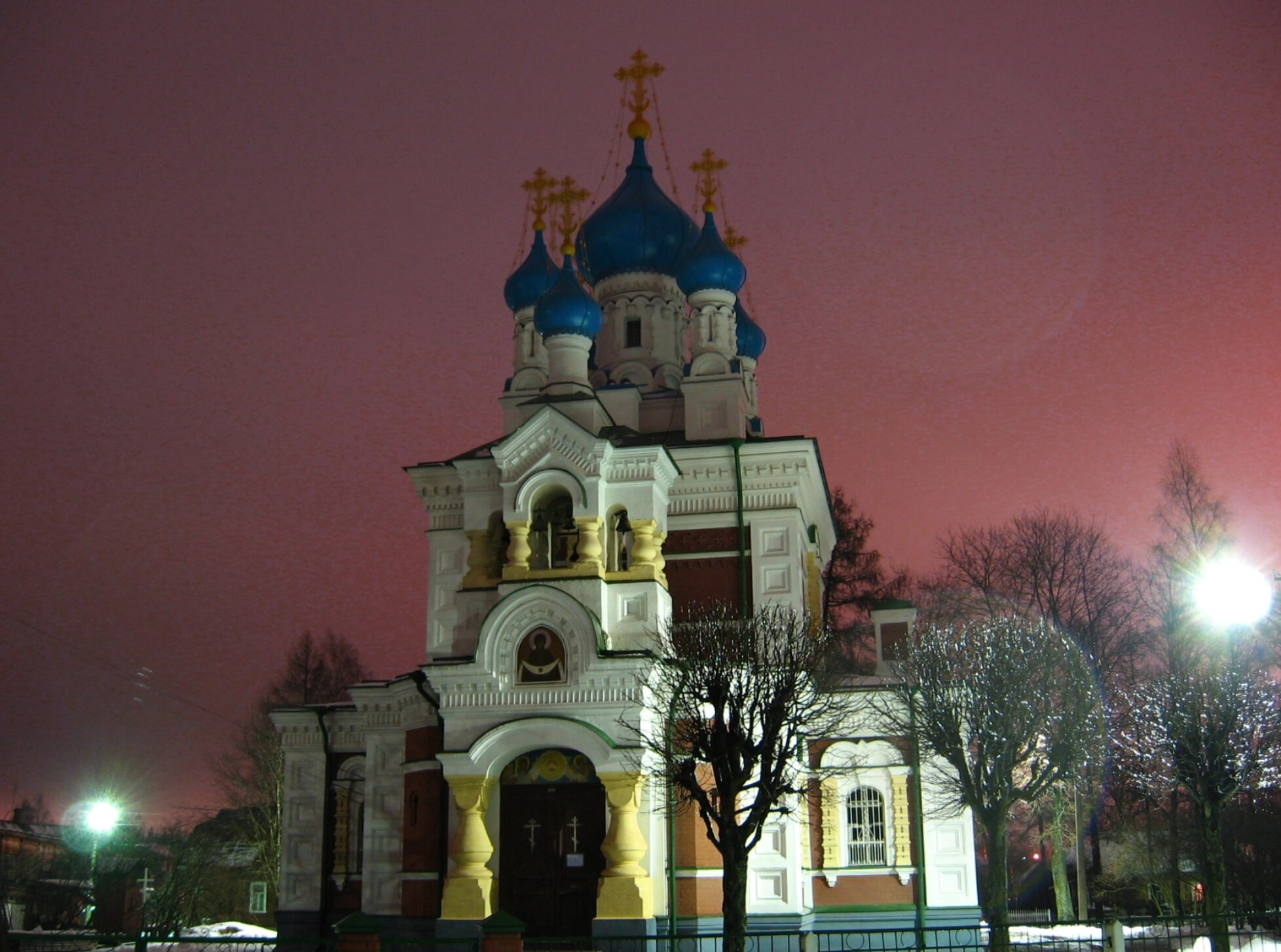 - Церковь Покрова Пресвятой Богородицы в Гатчине зимней ночью