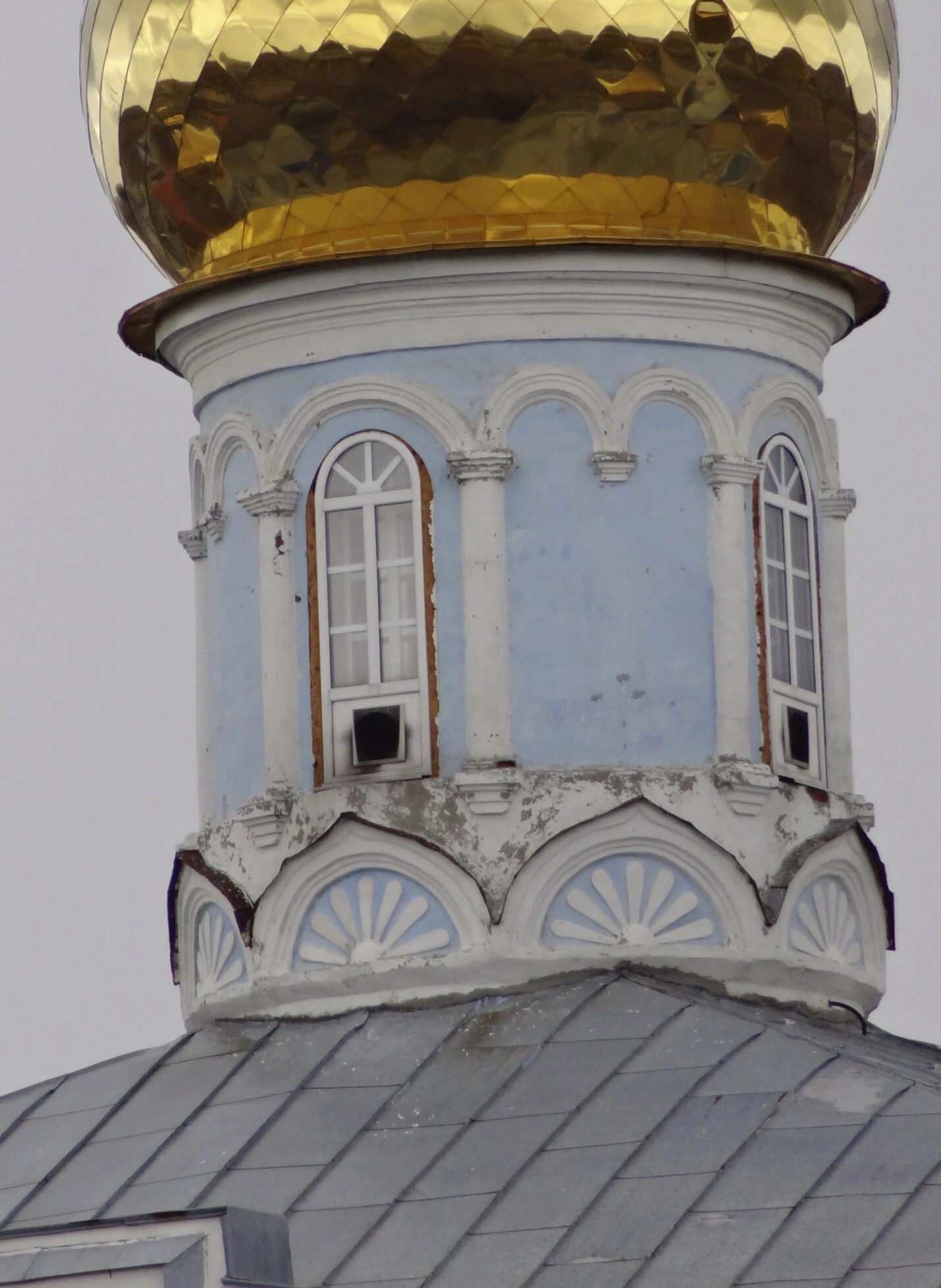 Венчает конструкцию купол сферической формы, покрытый золотым покрытием. Он сияет в лучах солнца, олицетворяя нетварный Божественный свет и славу Господа. Под барабаном располагается кровля сложного строения, выполненная в серых тонах и дополненная арочными элементами, что подчёркивает традиции русского церковного зодчества.
