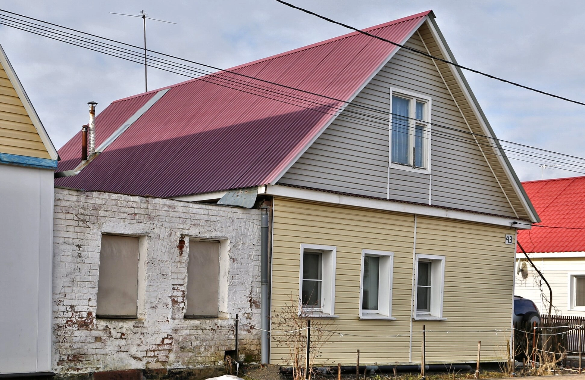 На боковой пристройке обращают на себя внимание два заложенных оконных проёма на белой кирпичной стене, что свидетельствует о возможных перепланировках в истории храма. На фасаде здания чётко виден номер 93, позволяющий идентифицировать конкретное строение.