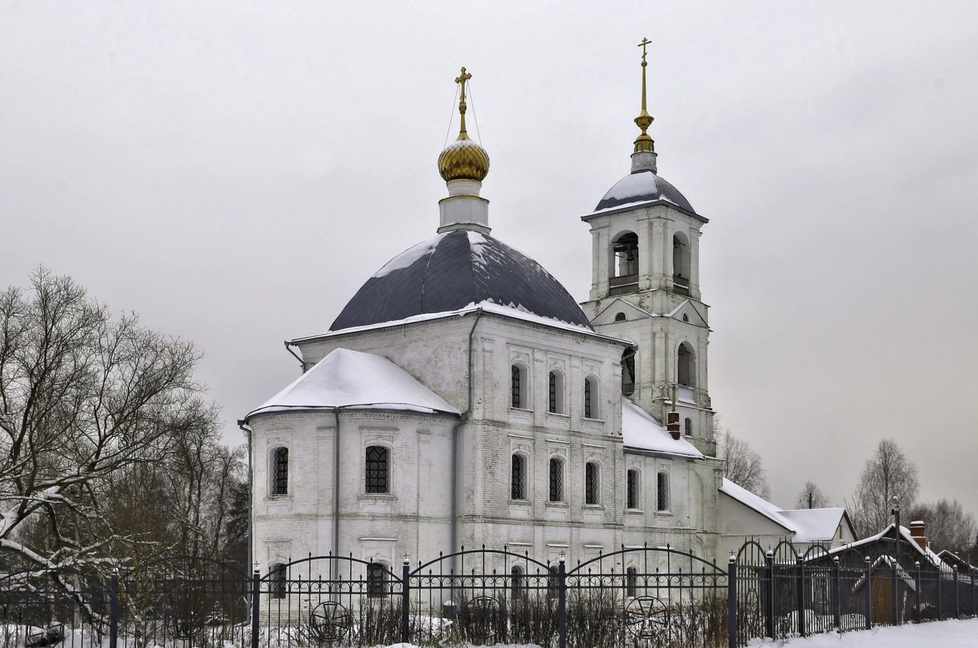 Белокаменное здание церкви представляет собой прекрасный образец православной архитектуры. В зимнее время храм приобретает особое величие и духовную значимость, контрастируя с окружающим снежным покровом. Четкие линии архитектурных форм и традиционное для русских храмов устройство создают гармоничный образ, наполненный благодатью и умиротворением.