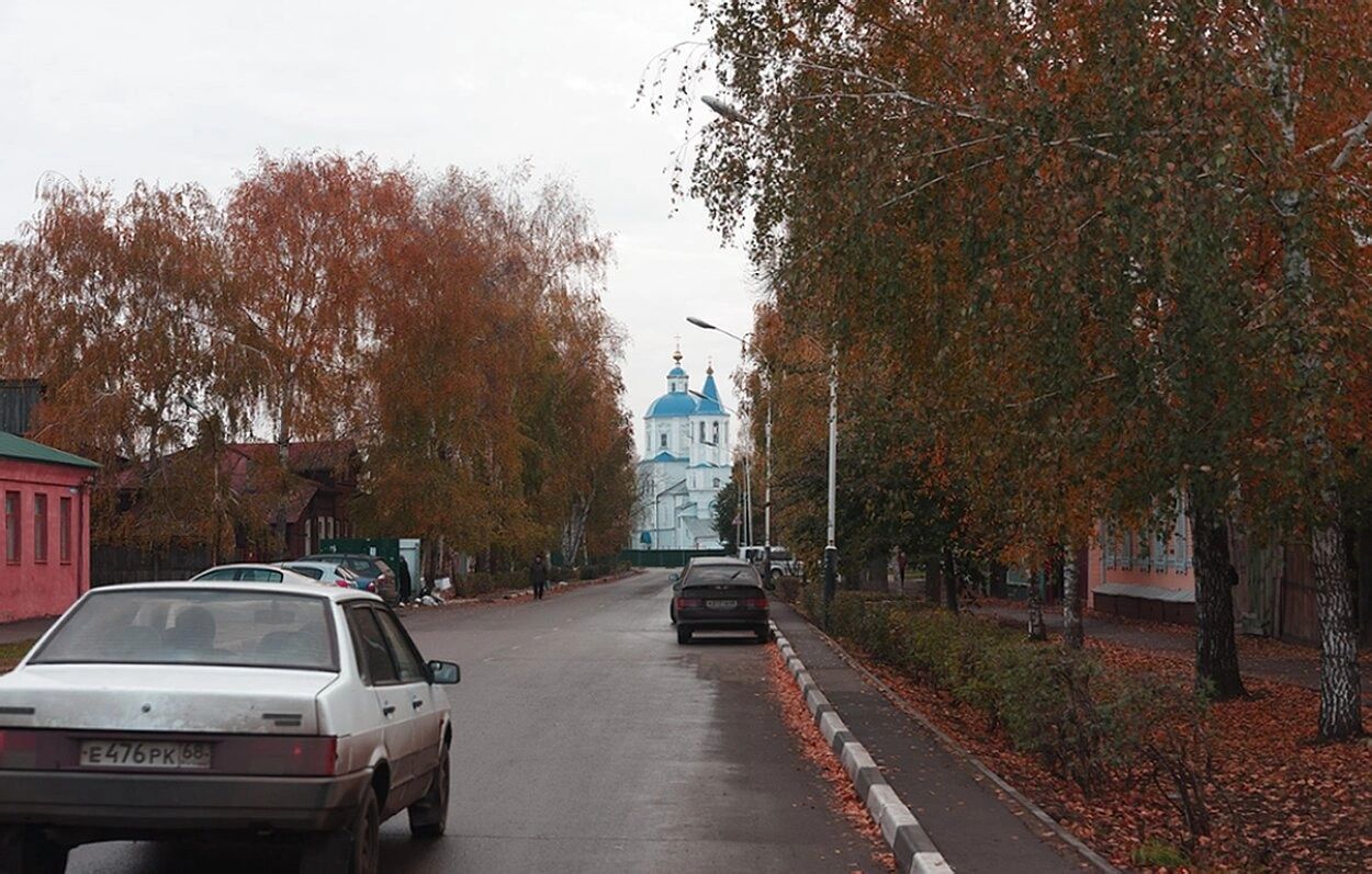 Церковь Покрова Пресвятой Богородицы — это действующий православный храм, являющийся объектом культурного наследия и важной частью исторического облика Тамбова. Данный снимок не просто фиксирует вид улицы, но и передаёт особое настроение осеннего дня, где рукотворная красота храма гармонично сливается с природным великолепием, напоминая о бренности земного и вечности духовного.