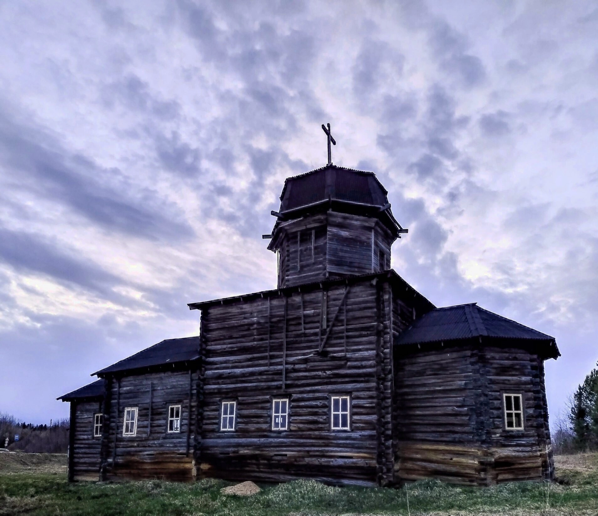 На фотографии запечатлена Церковь Покрова Пресвятой Богородицы, расположенная в посёлке Усть-Ваеньга Виноградовского района Архангельской области. Этот действующий православный храм является значимым памятником культурного наследия региона и свидетельством духовной стойкости православной общины.