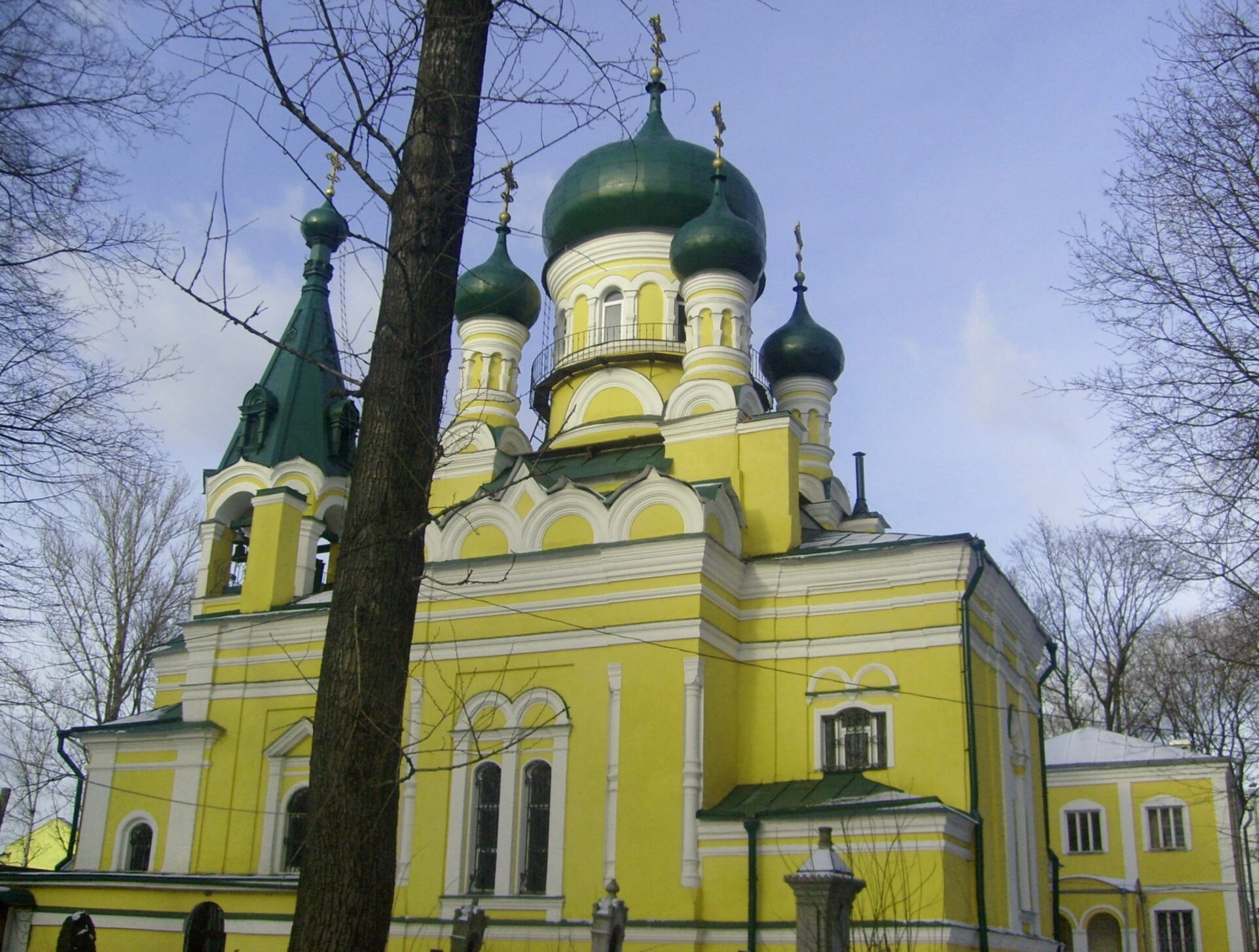 На представленной фотографии запечатлена Церковь праведного Иова Многострадального, расположенная на территории Волковского православного кладбища в Санкт-Петербурге. Этот храм, известный в народе как Крюковская церковь, является значимым памятником церковной архитектуры и духовной жизни северной столицы.