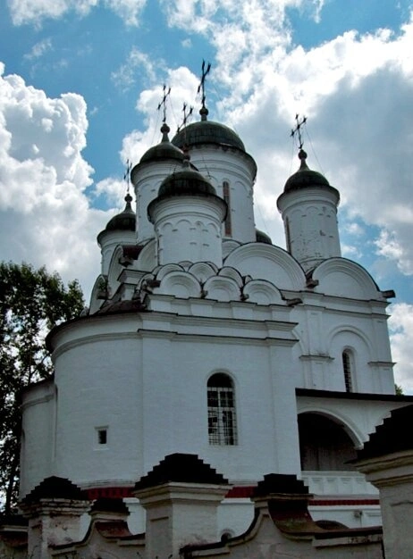 Храм увенчан пятью главами, покрытыми тёмным материалом и увенчанными православными крестами, символизирующими распятие Спасителя. Композиция завершается колокольней псковского типа, что является уникальной особенностью для подмосковных земель.