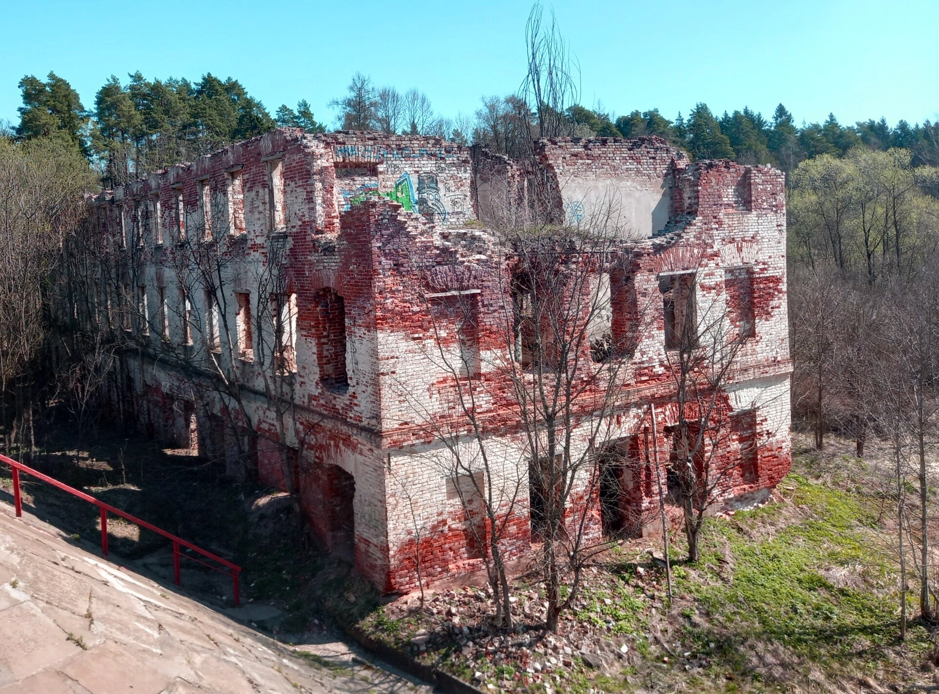 Рядом с руинами проходит бетонная дорожка с красным ограждением, что указывает на некоторую попытку благоустройства территории, однако само здание храма продолжает пребывать в состоянии разрушения. Такое состояние святой обители напоминает нам о необходимости сохранения православного наследия и возрождения поруганных святынь.