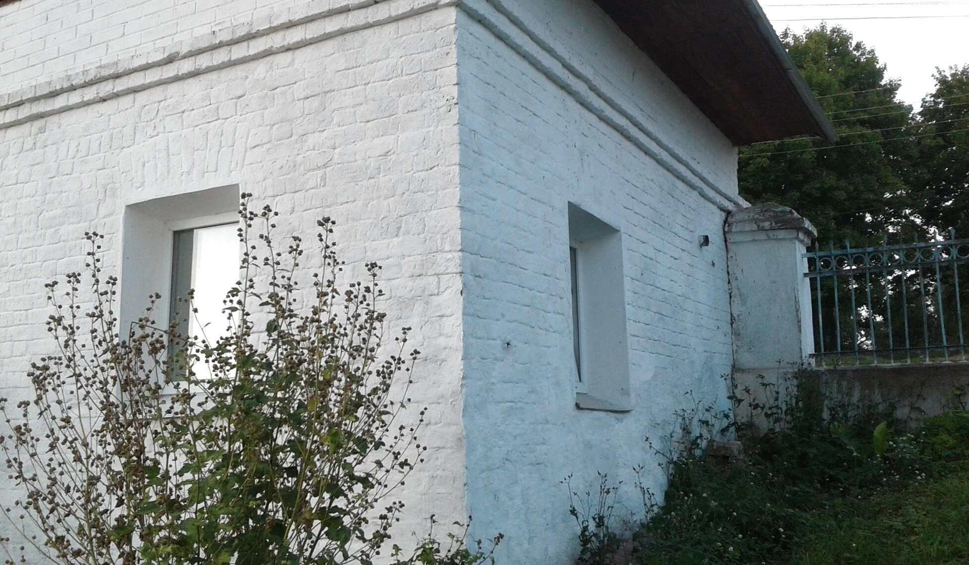 На представленной фотографии запечатлён фрагмент северного фасада Церкви Преображения Господня, что располагается в древнем городе Шуя Ивановской области. Белоснежный кирпич, из которого сложены стены храма, символизирует чистоту и духовное преображение. Два арочных окна, характерных для русской церковной архитектуры конца XIX века, не только освещают внутреннее пространство, но и являются образом Божественного света, озаряющего верующих.