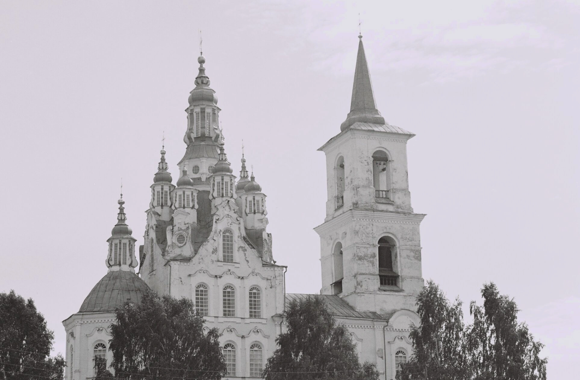 На представленной фотографии запечатлена Церковь Преображения Господня, расположенная в селе Нижняя Синячиха Свердловской области. Этот величественный храм является выдающимся памятником русской деревянной архитектуры XVIII века и центральным объектом Музея-заповедника деревянного зодчества и народного искусства.