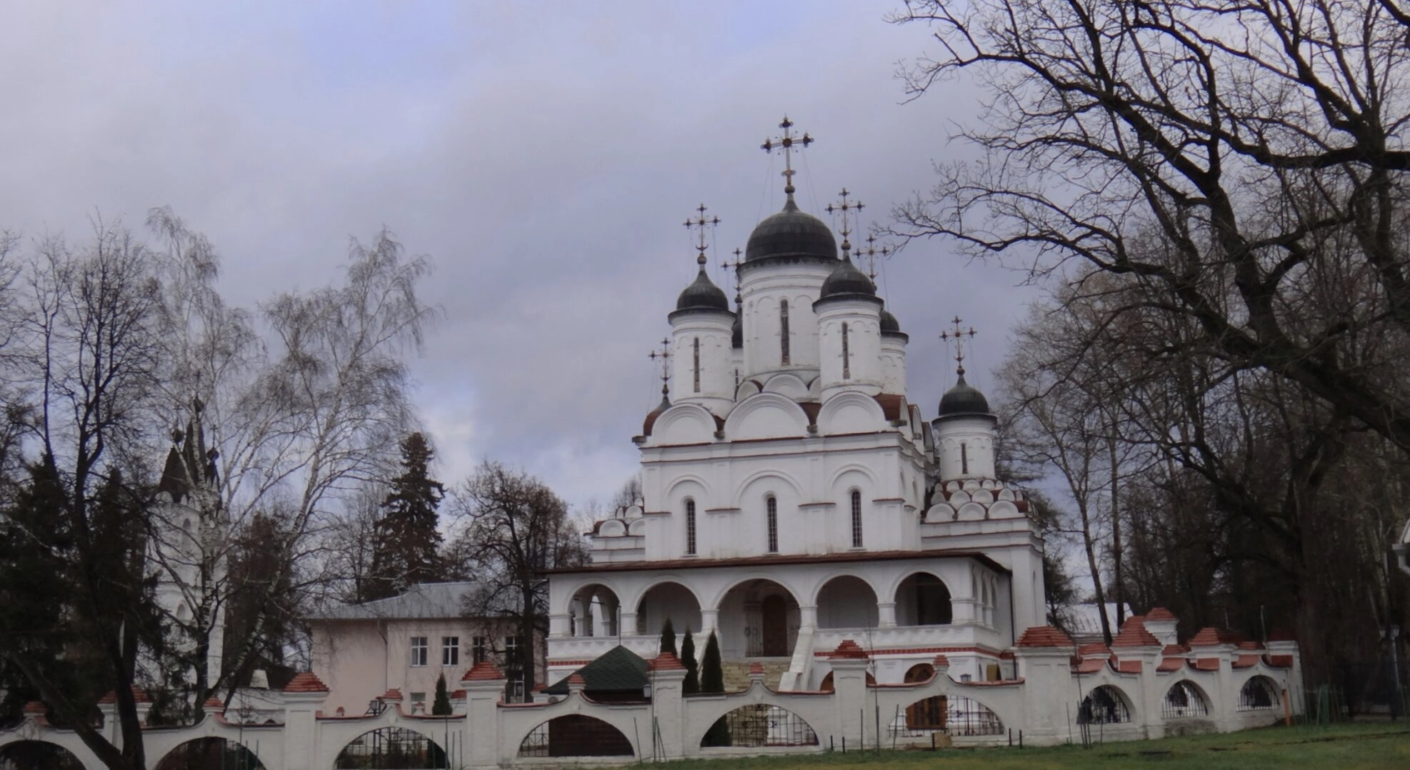 На представленной фотографии запечатлён величественный образ Церкви Преображения Господня в селе Большие Вязёмы Одинцовского района Московской области. Этот выдающийся памятник русского зодчества конца XVI века был воздвигнут по повелению царя Бориса Годунова в его вотчине, в старинном селе Никольское-Вязёмы. Семиглавый двухэтажный храм, первоначально освящённый во имя Святой Троицы, является одним из немногих уцелевших образцов так называемого годуновского стиля в церковной архитектуре.