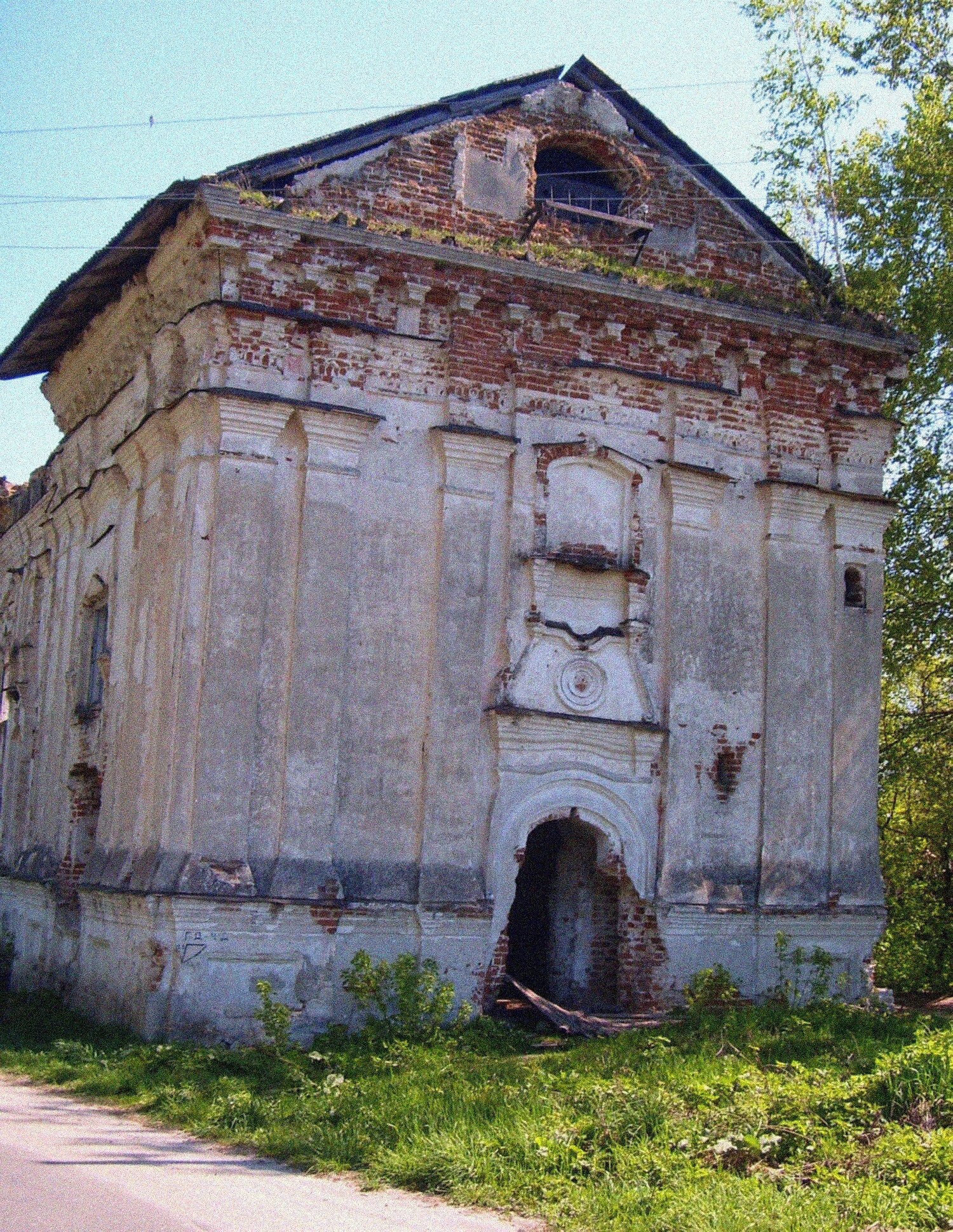 К великому сожалению, время и человеческое забвение не пощадили дом Божий. На снимке видны серьёзные разрушения: частично обрушены своды и кровля, местами обнажена кирпичная кладка, утрачены оконные и дверные заполнения. Вокруг храма, словно символ запустения, разрослись деревья и высокая трава. Однако даже в таком состоянии храм производит глубокое впечатление и повествует о непреходящей красоте православной архитектуры.