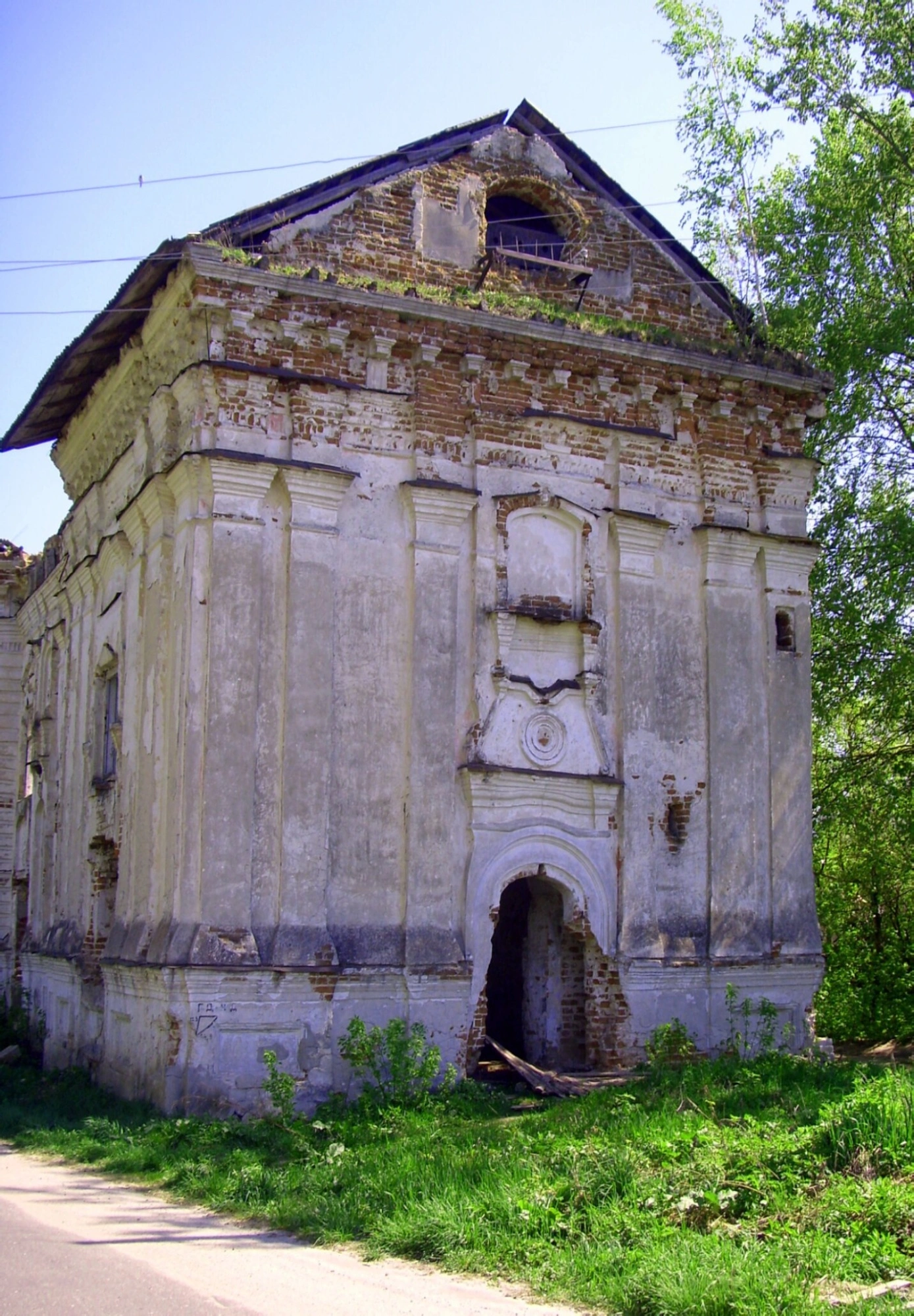 Здание сооружено из кирпича и демонстрирует характерные для церковной архитектуры элементы. Фасад частично осыпался, обнажая древнюю кладку и свидетельствуя о длительном отсутствии реставрационных работ. Кровля также значительно пострадала от времени и непогоды, местами полностью обрушившись.