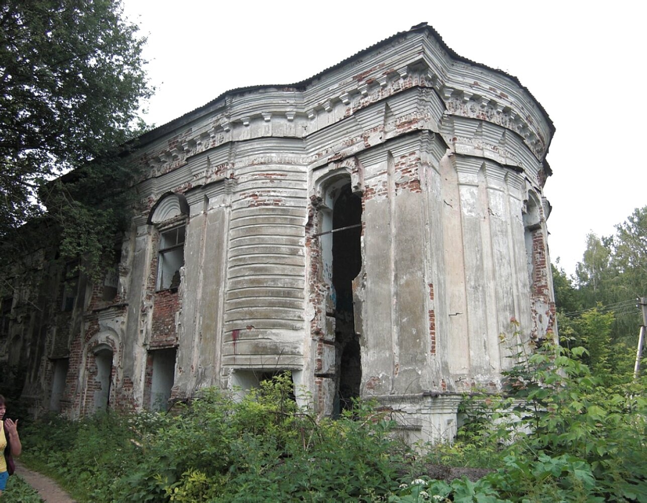 Здание храма было возведено в конце XVIII века на средства местного помещика, что определило его архитектурное великолепие. Фасад выполнен из кирпича и оштукатурен, а его композиция следует канонам классицизма с элементами барокко, что было характерно для эпохи русского провинциального зодчества. Несмотря на повреждения, чётко читаются основные объёмы: двусветный четверик, увенчанный мощным световым барабаном и главой, полукруглая апсида и трапезная часть.