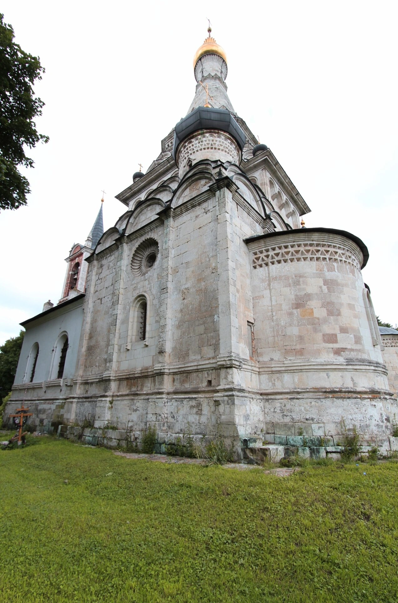 Архитектура храма включает несколько ярусов, что подчёркивает его монументальность и гармоничную вписанность в окружающий ландшафт. Здание украшено искусной резьбой по камню, которая демонстрирует высокое мастерство русских зодчих. Резные элементы, характерные для православного храмового зодчества, включают орнаменты и символические изображения, отражающие духовные истины и церковные традиции. Использование резьбы по камню, особенно по мрамору, является древним искусством, которое подчёркивает величие и долговечность храма.