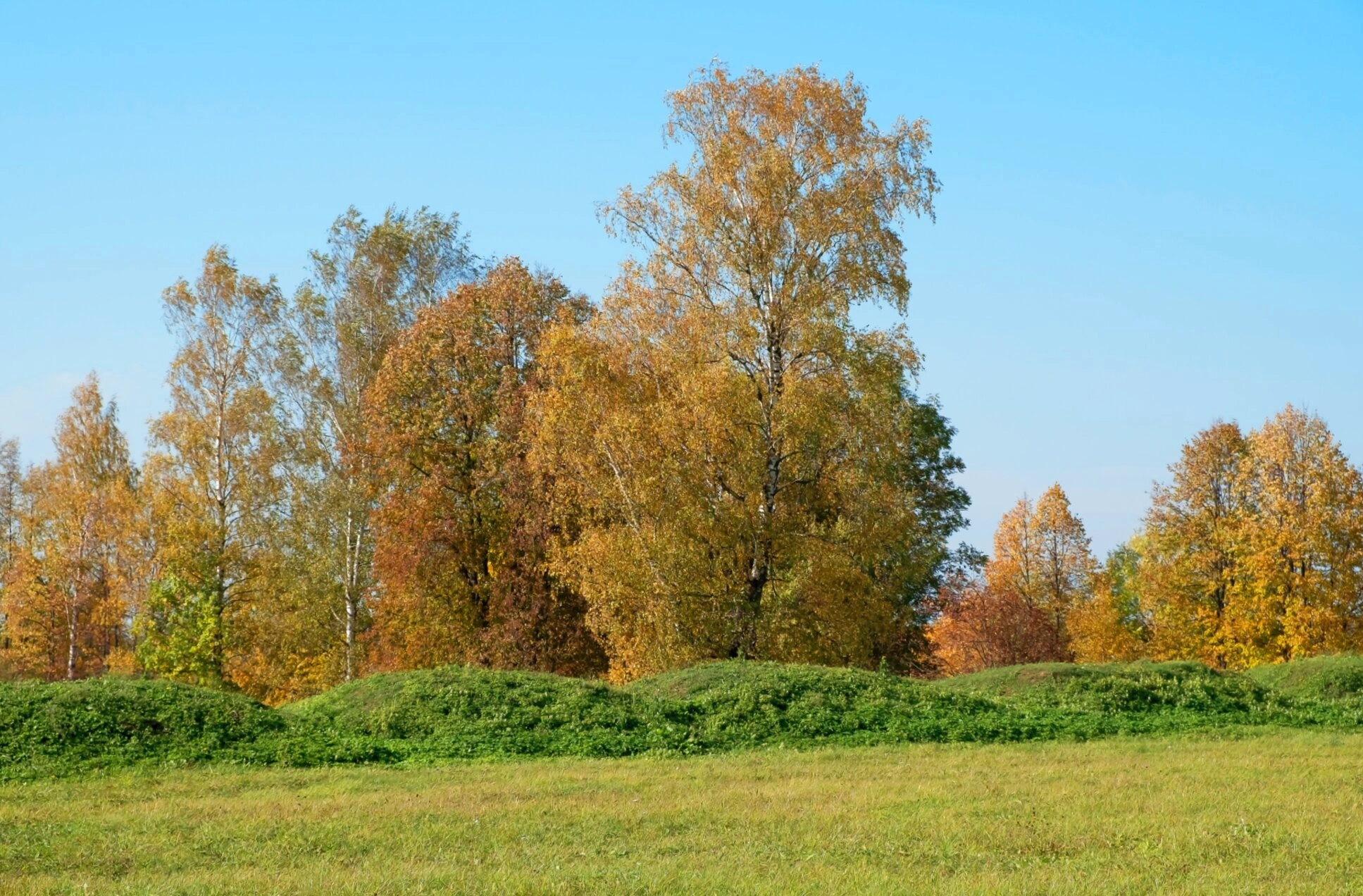 Чистое голубое небо над храмом создает ощущение духовной чистоты и возвышенности. Отсутствие современных построек и нарушающих гармонию элементов позволяет fully ощутить атмосферу православной святыни в ее естественном окружении. Фотография передает умиротворенное состояние осеннего дня, когда природа готовится к зимнему сну, а храм продолжает свое вечное служение.